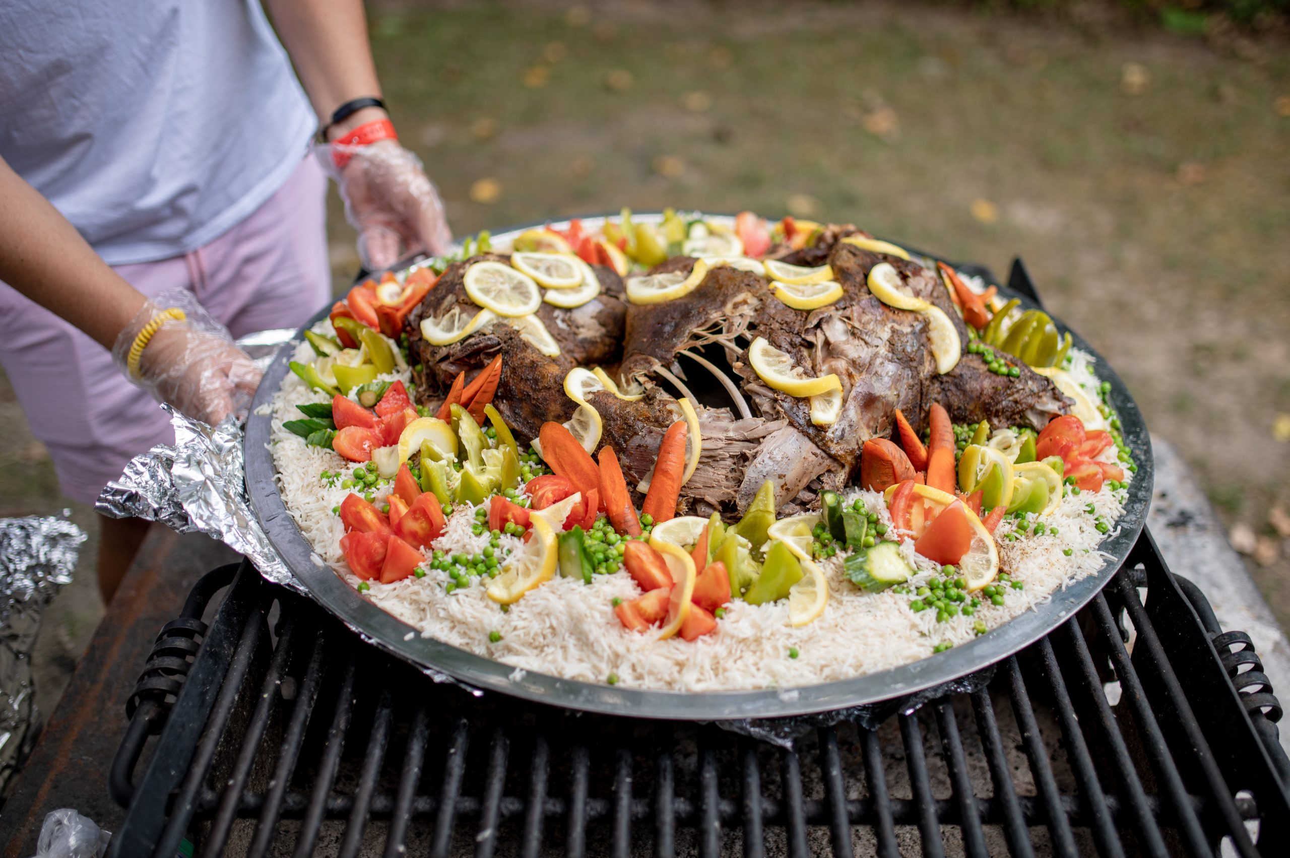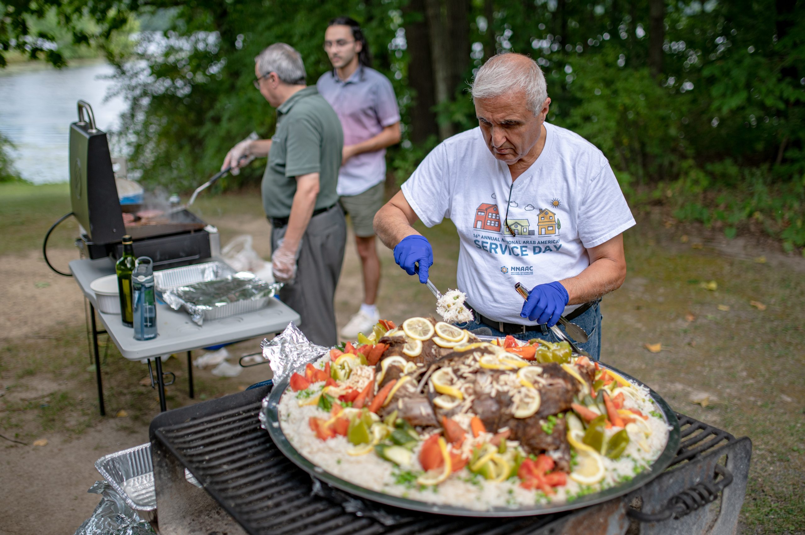 Holly, MIâAs Seven Lakes glistened in the harsh afternoon sunlight a few hundred feet away, Zain Salman and Dr. Abd Alghanem carefully unwrapped layers and layers of foil from an enormous round dish, revealing a freshly roasted lamb resting on a bed of rice garnished with lemons, veggies and pine nuts. This dish was the centerpiece of a spread that seemed to keep growing as dozens of people of Middle Eastern descent with homemade meals in hand gathered under the shade of the Fisherman’s Cove Pavilion to celebrate their culture at the Arab American Heritage Council (AAHC) of Greater Flint’s annual community picnic on Sunday, Aug. 28, 2022.