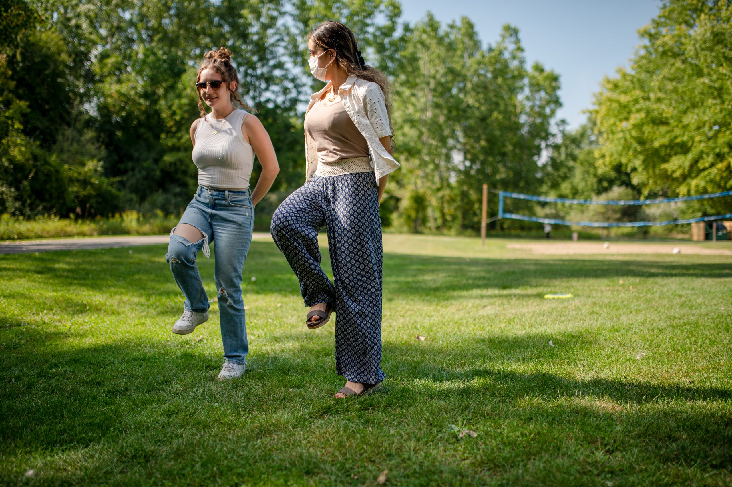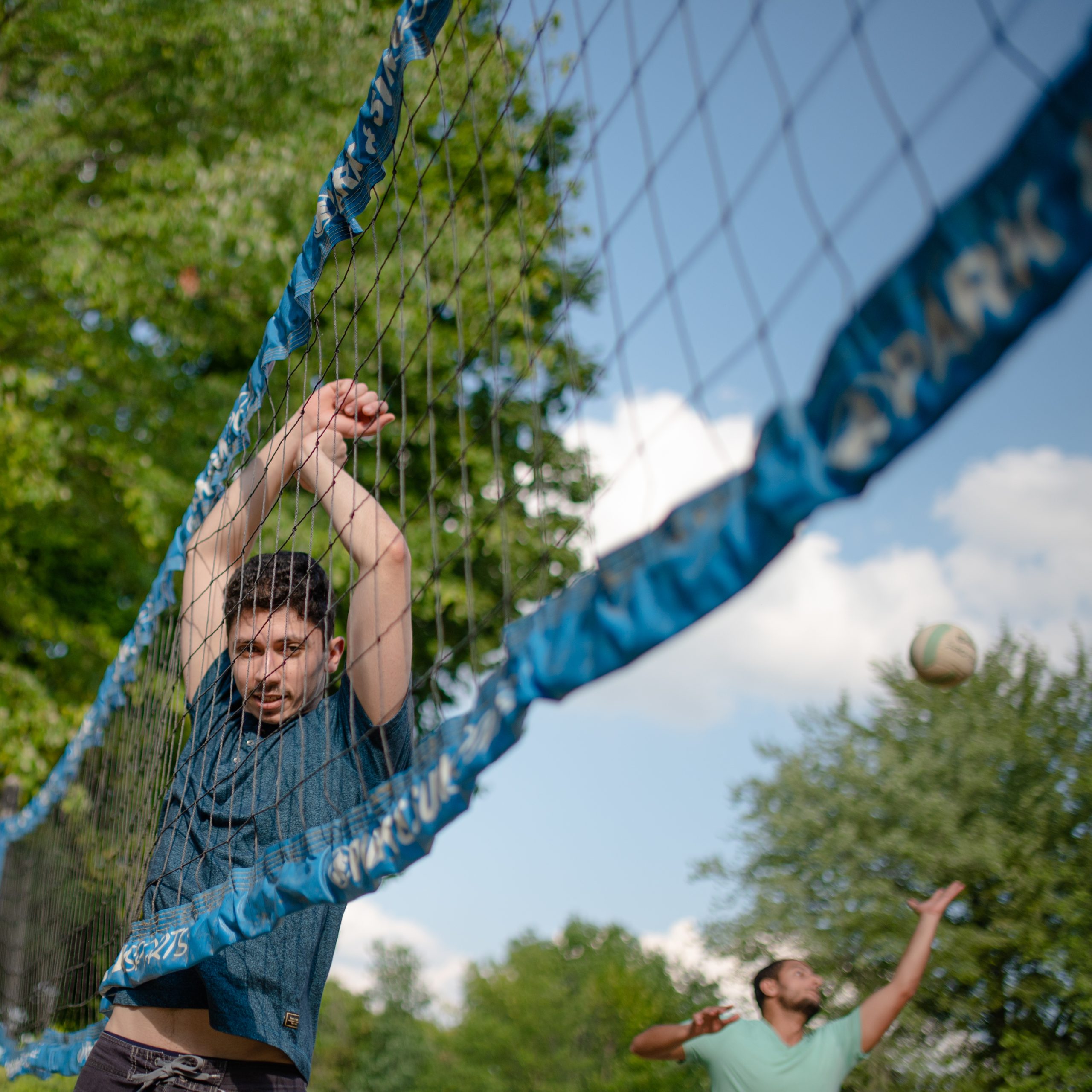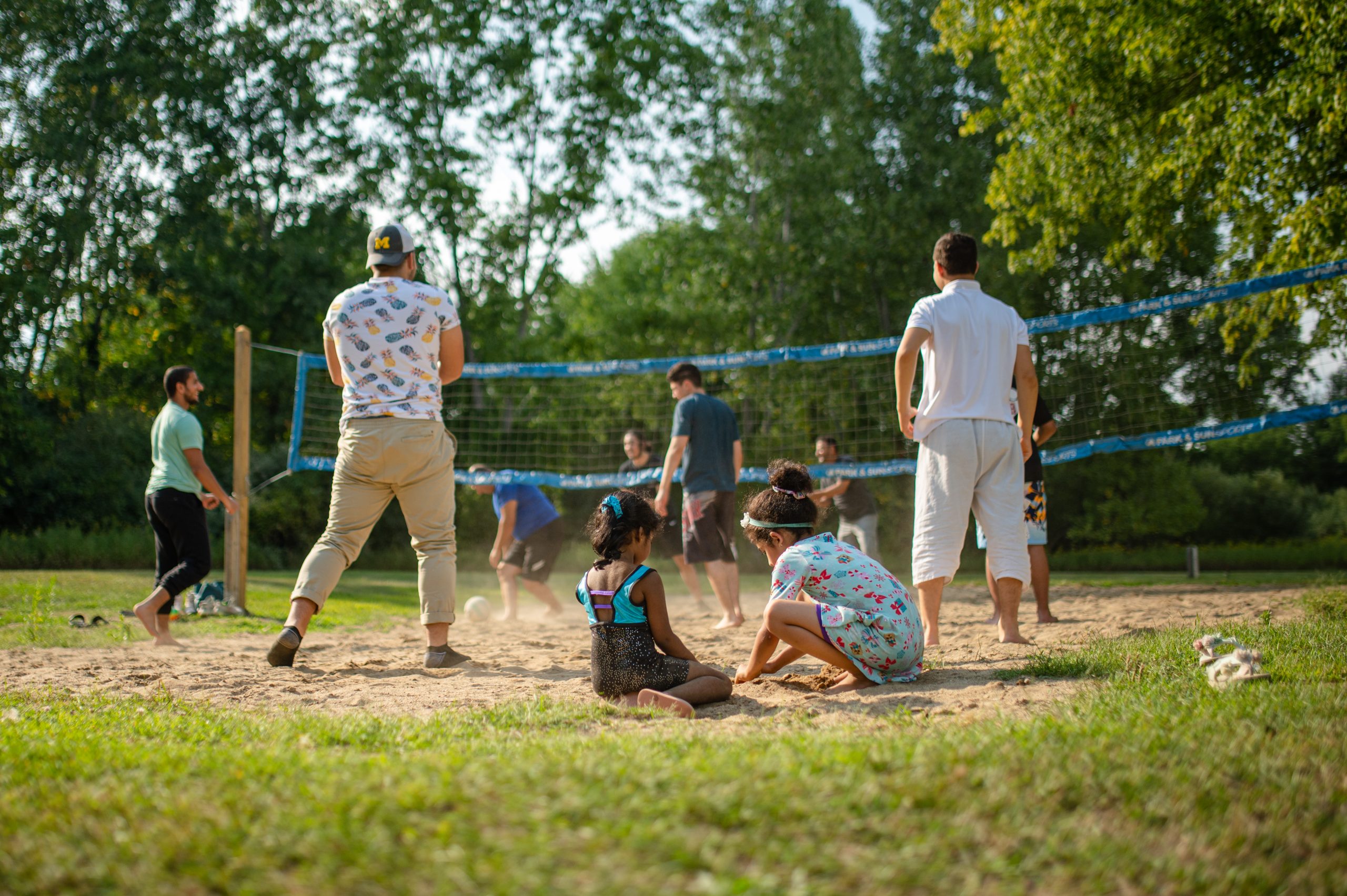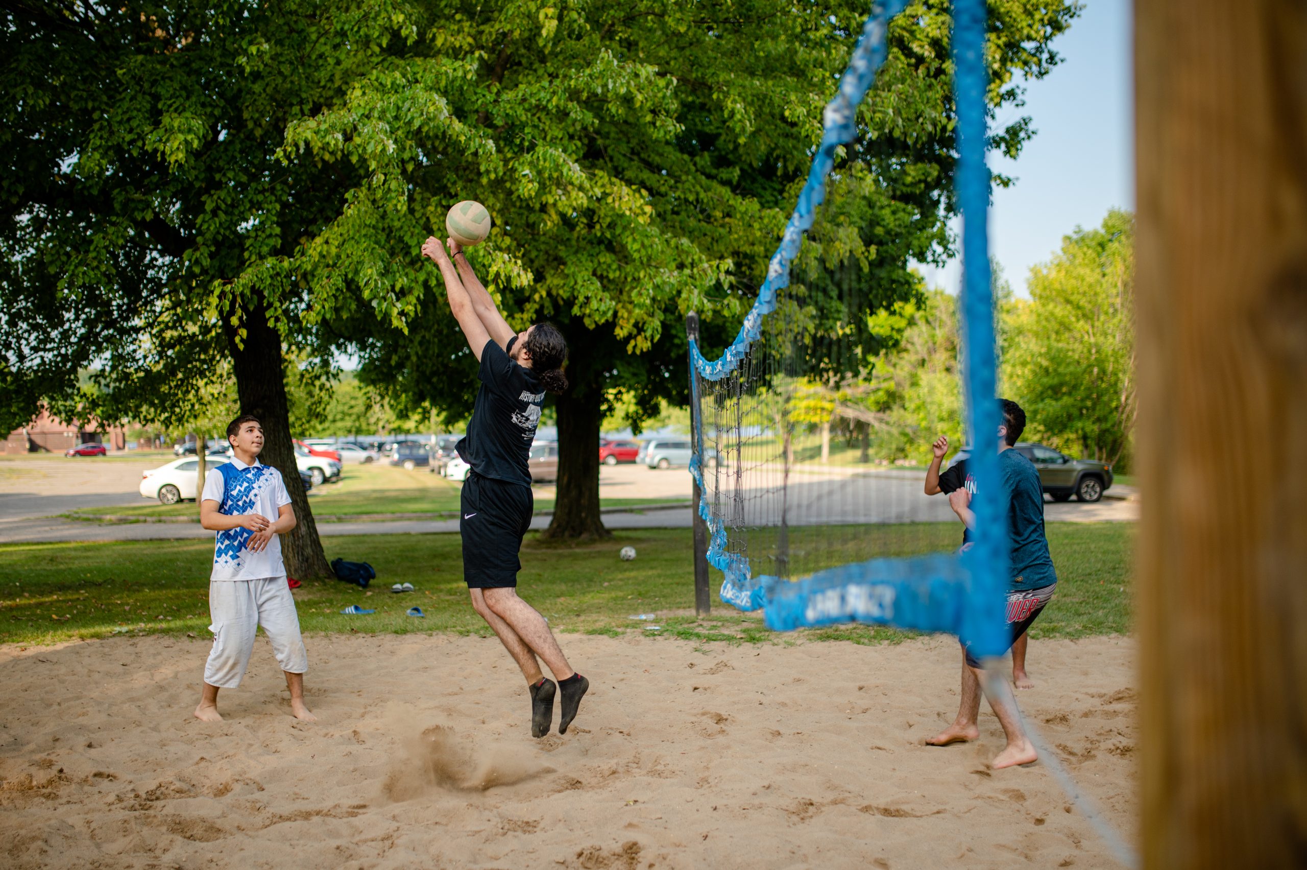 Picnic attendees compete in a friendly volleyball match during the Arab American Heritage Council’s annual community picnic at Seven Lakes State Park in Holly, Mich. on Sunday, Aug. 28, 2022. (Michael Indriolo | Flint Beat)