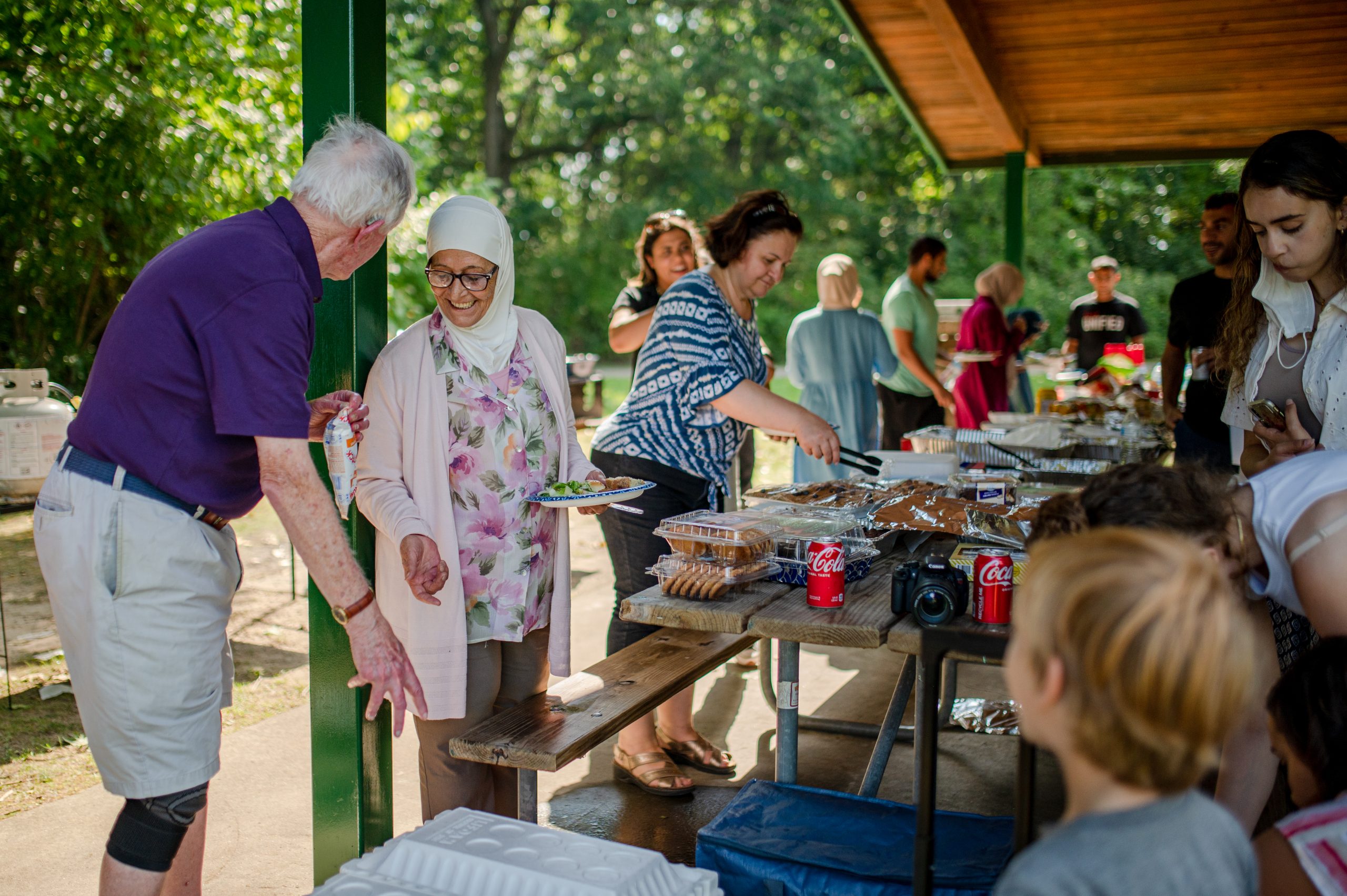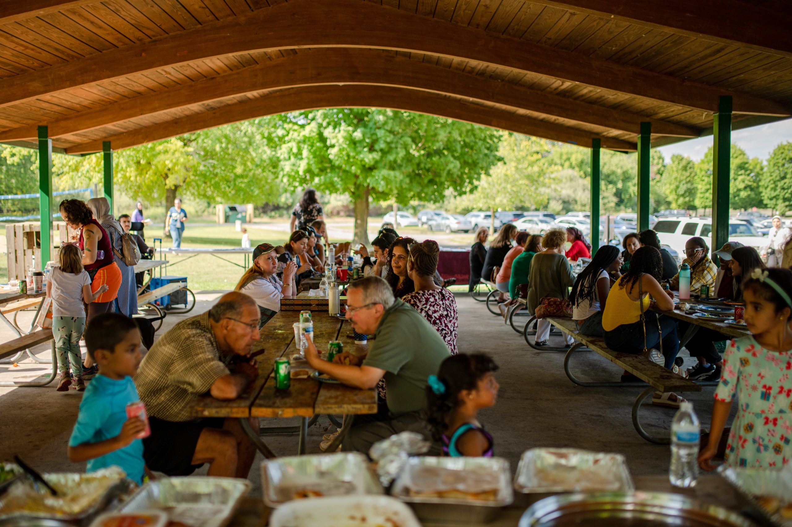 Picnic attendees chat while Genesee Countyâs 7th Circuit Court Judge Candidate Mary Hood scoops a plate of rice and roasted lamb during the Arab American Heritage Council’s annual community picnic at Seven Lakes State Park in Holly, Mich. on Sunday, Aug. 28, 2022. (Michael Indriolo | Flint Beat)Picnic attendees sit down to eat in the Fisherman’s Cove Pavilion during the Arab American Heritage Council’s annual community picnic at Seven Lakes State Park in Holly, Mich. on Sunday, Aug. 28, 2022. (Michael Indriolo | Flint Beat)Picnic attendees gather in the Fisherman’s Cove Pavilion during the Arab American Heritage Council’s annual community picnic at Seven Lakes State Park in Holly, Mich. on Sunday, Aug. 28, 2022. (Michael Indriolo | Flint Beat)