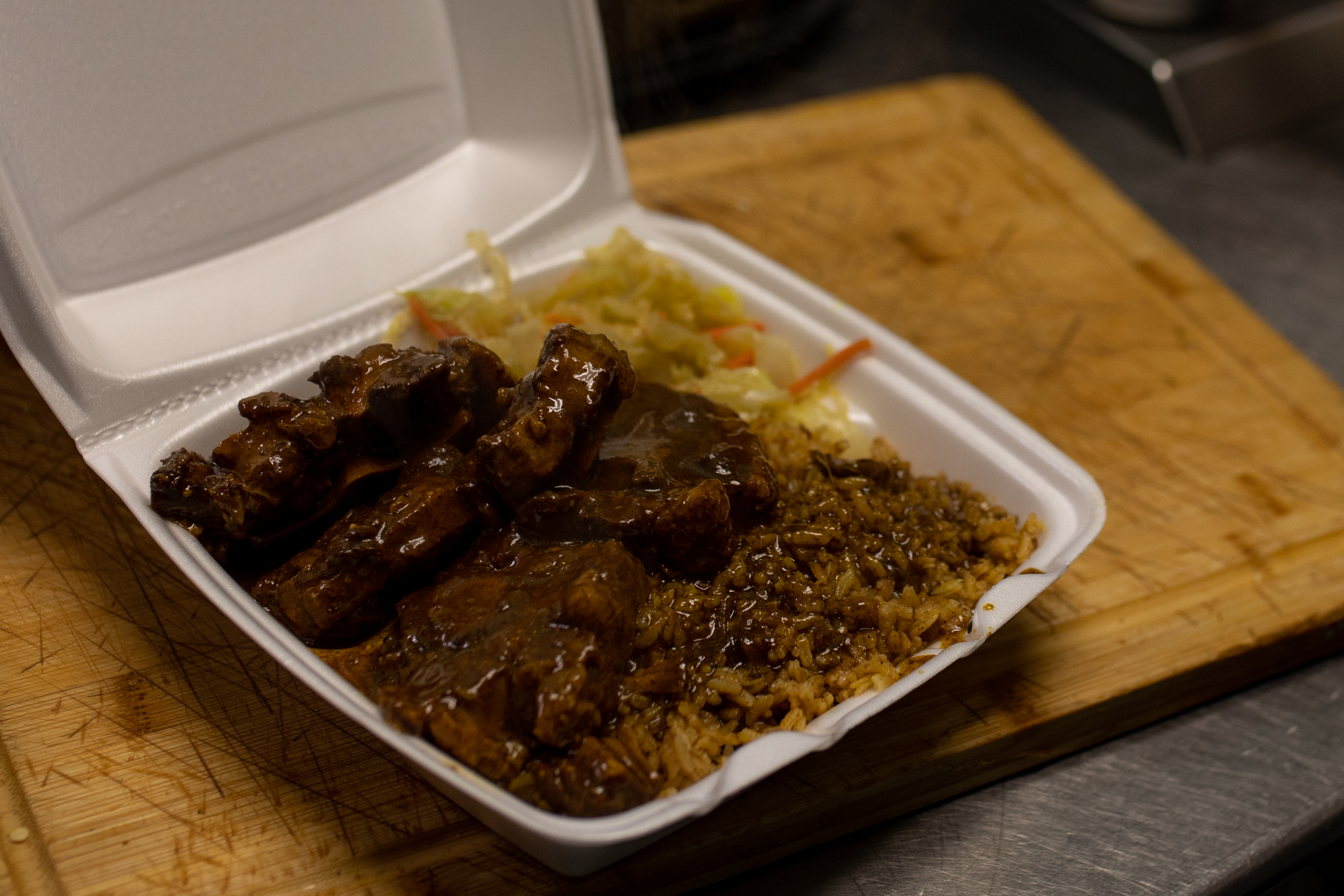 The food she sells is the same food she grew up cooking and eating, along with some new takes on American favorites, like macaroni and cheese “Caribbean style,” and vegan options inspired by her four years as a vegan. The menu grows a little each week.