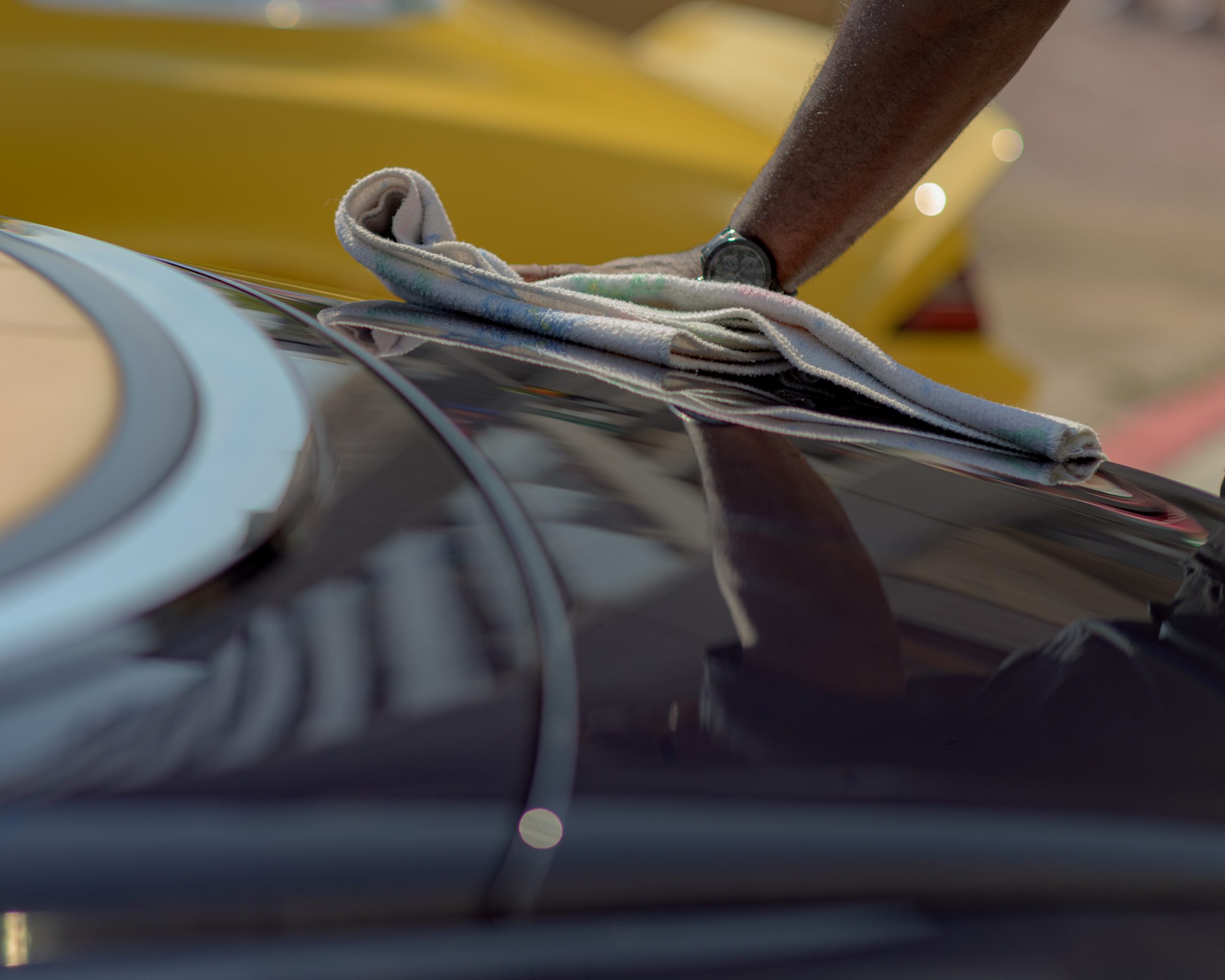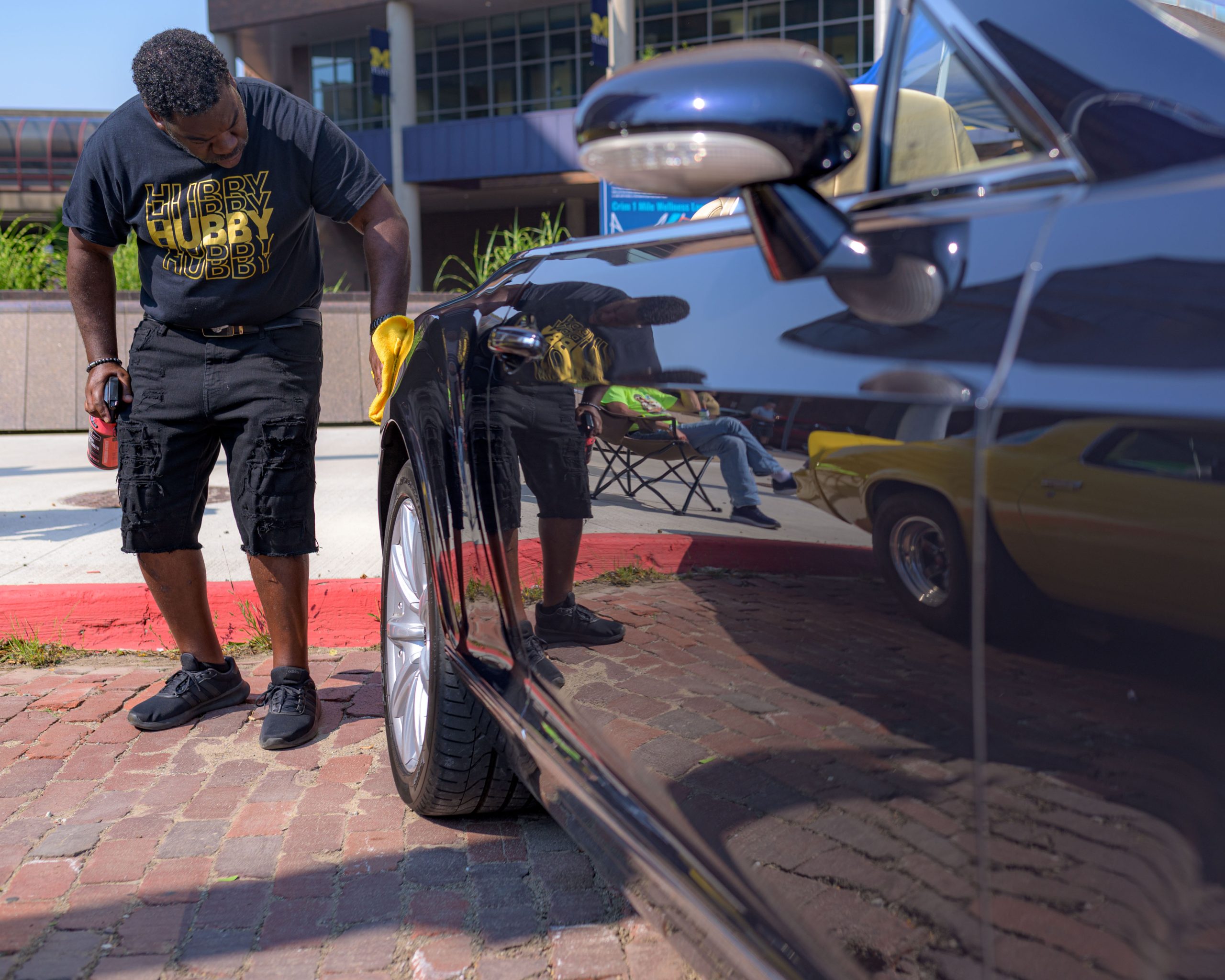 Chris Bolds shines his Bentley during the 19th annual Back to the Bricks car show in Flint, Mich. on Saturday, Aug. 19, 2023. (Michael Indriolo | Flint Beat)