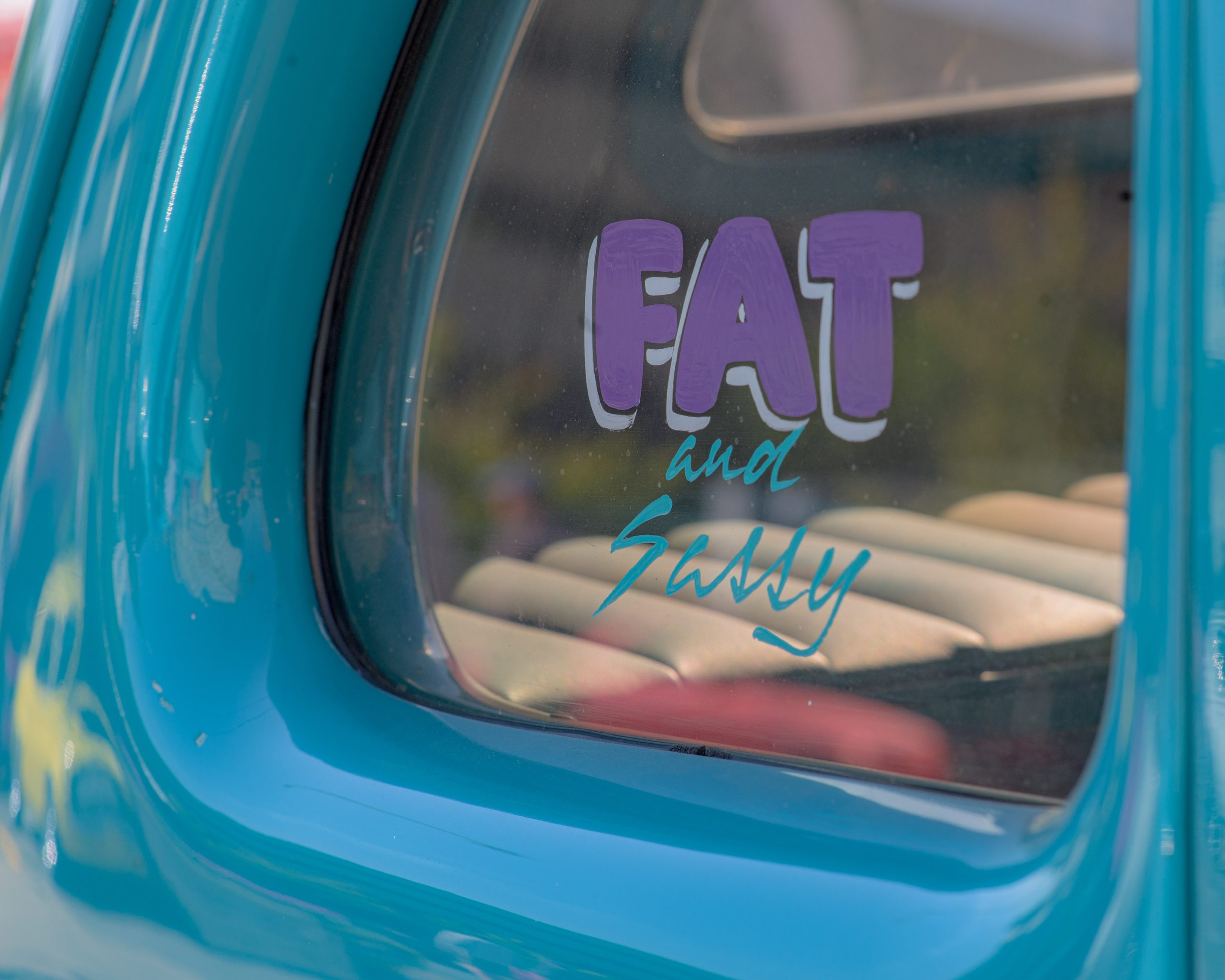 A sticker adorns the window of a vintage Ford Deluxe during the 19th annual Back to the Bricks car show in Flint, Mich. on Saturday, Aug. 19, 2023. (Michael Indriolo | Flint Beat)