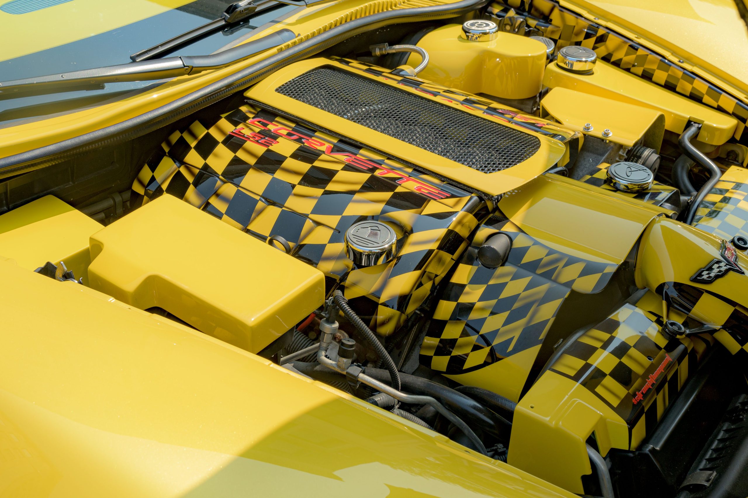 Donta Hampton shows the engine of his Corvette during the 19th annual Back to the Bricks car show in Flint, Mich. on Saturday, Aug. 19, 2023. (Michael Indriolo | Flint Beat)