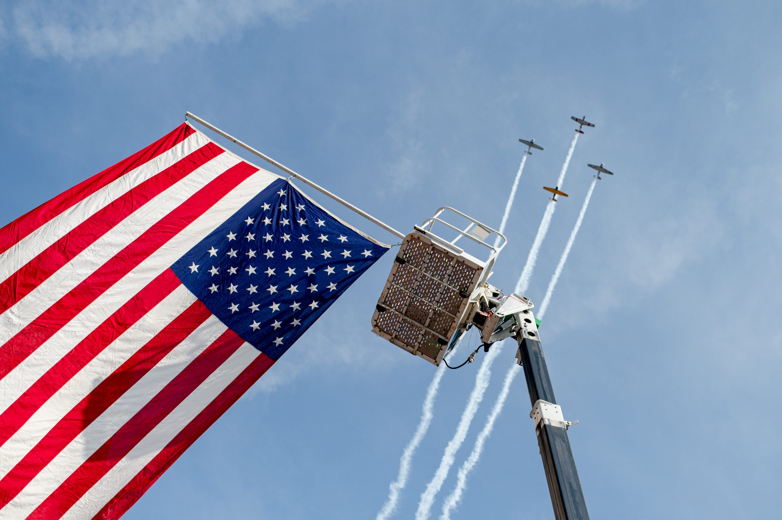 Military planes fly over the Back to the Bricks opening ceremony in Downtown Flint, Mich. on Saturday, Aug. 20, 2022. (Michael Indriolo | Flint Beat)