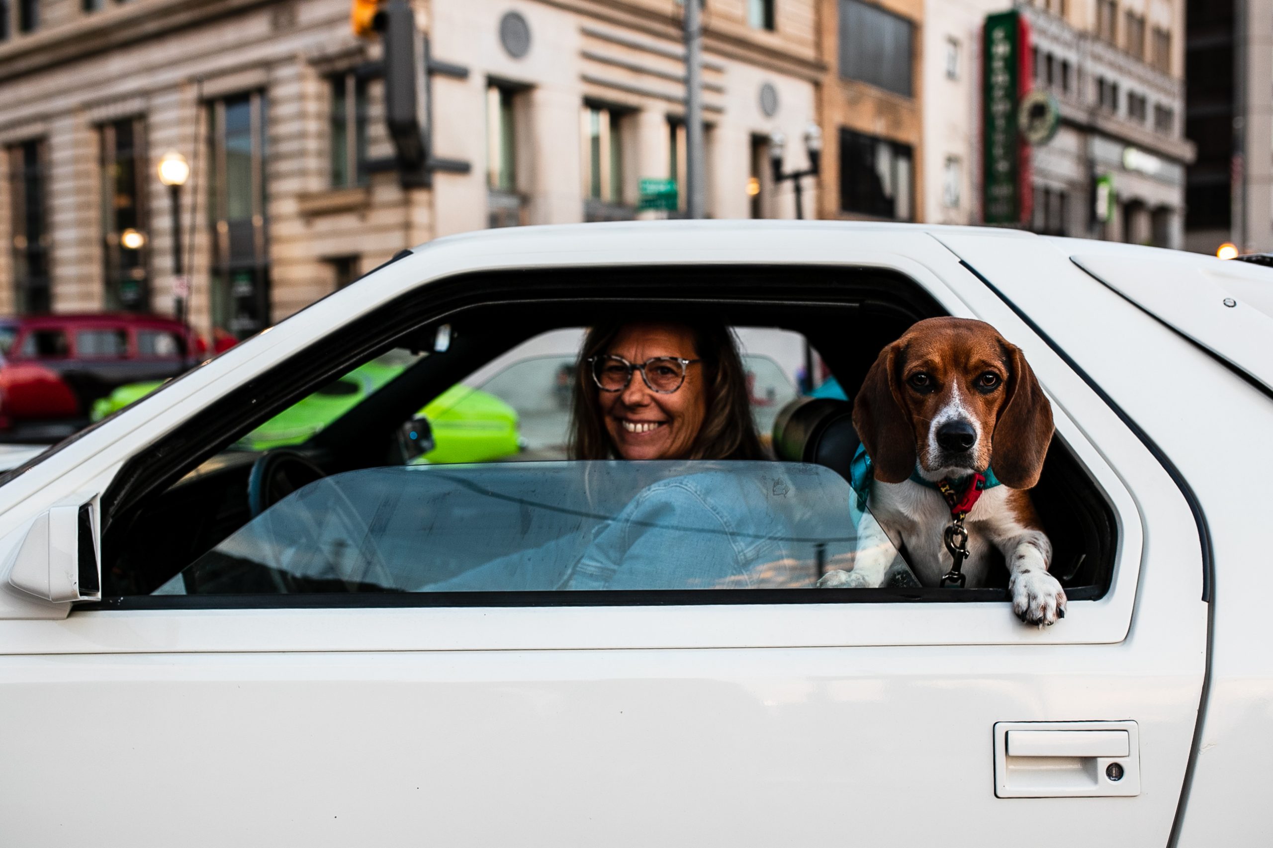 A classic car owner drives her car with her Beagle at her side on the bricks of Saginaw Street during the 18th annual Back to the Bricks car show & cruise in Downtown Flint on Saturday, Aug. 20, 2022. (Jenifer Veloso | Flint Beat)Car show attendees pause while walking down Saginaw Street to look at classic cars during Back to the Bricks in Downtown Flint, Mich. on Saturday, Aug. 20, 2022. (Michael Indriolo | Flint Beat)Car enthusiasts and motorists alike gather on Saginaw Street for Back to the Bricks in Downtown Flint, Mich. on Saturday, Aug. 20, 2022. (Michael Indriolo | Flint Beat)