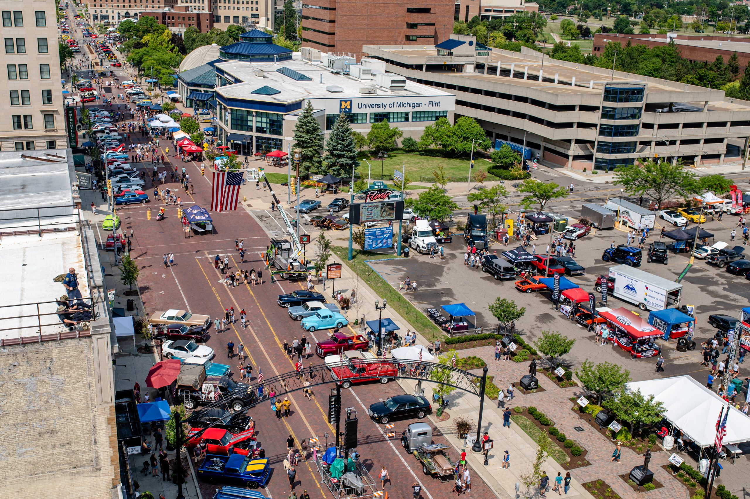 Hundreds of Chevrolet Corvettes lined up just north of the Flint River on Saginaw Street for the Corvette Reunion, harkening back to 1953 when General Motors workers assembled the first 300 ‘Vettes in Flint. Just across the river, motorists parked hundreds of vintage Buicks, which likewise originated in Flint.