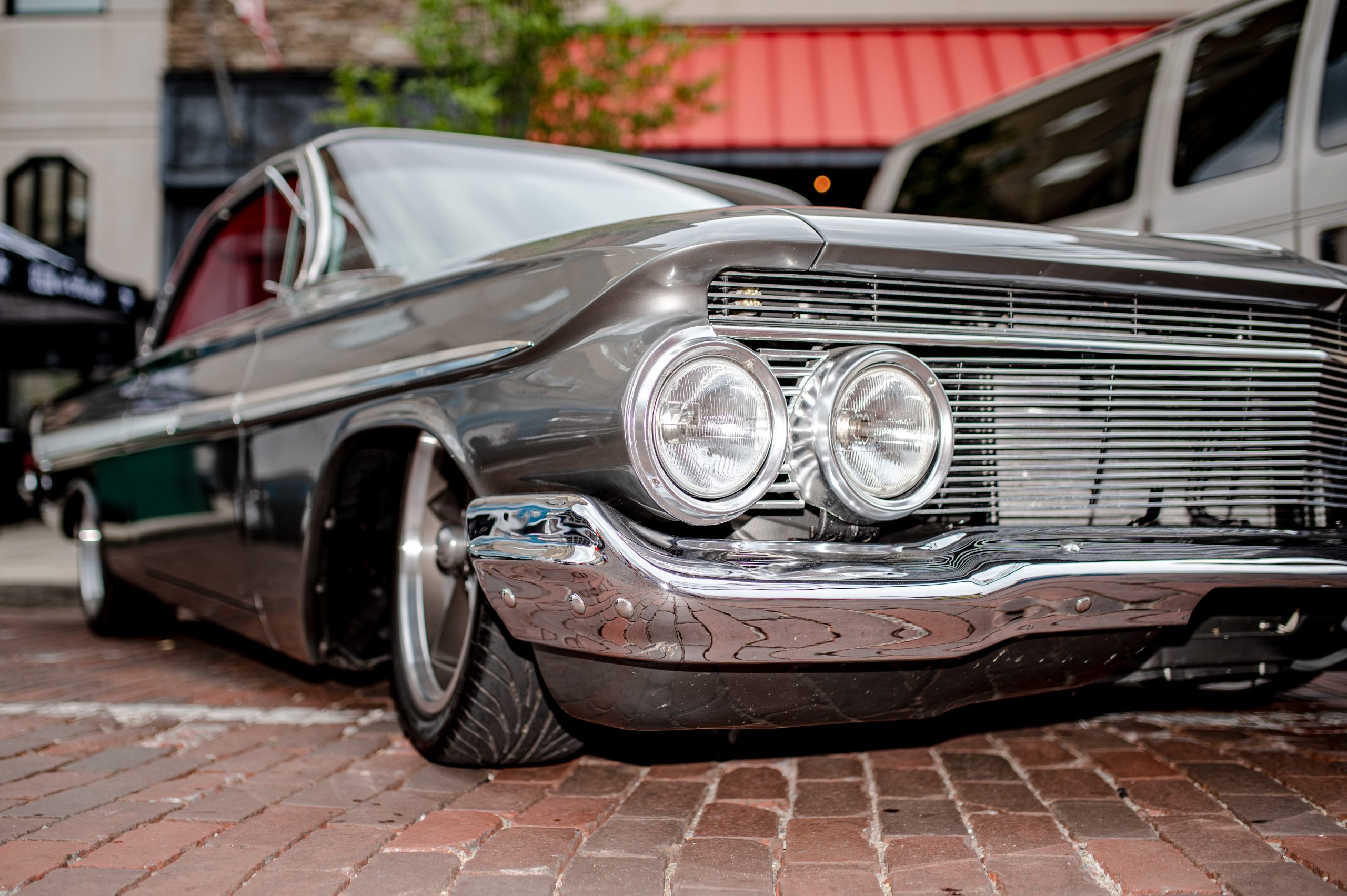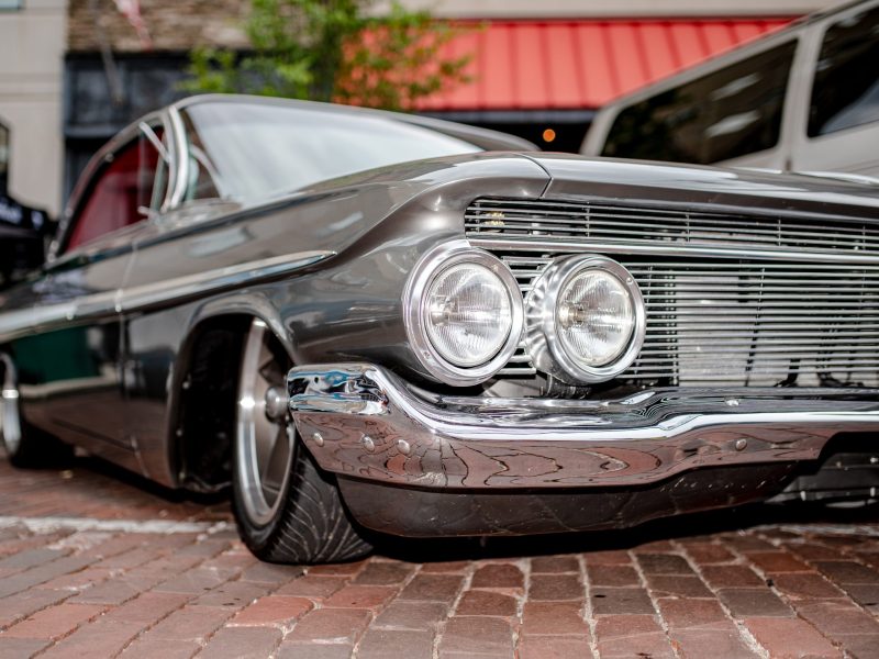 A 1961 Chevrolet Impala rests on Saginaw Street during Back to the Bricks in Downtown Flint, Mich. on Saturday, Aug. 20, 2022. (Michael Indriolo | Flint Beat)