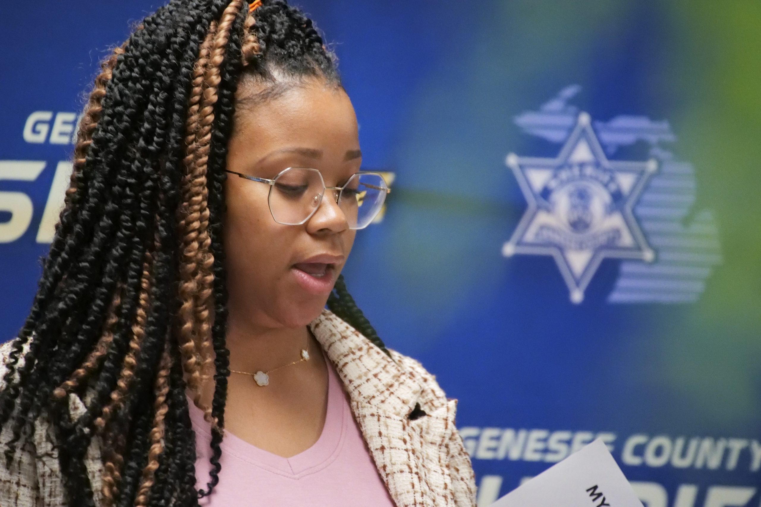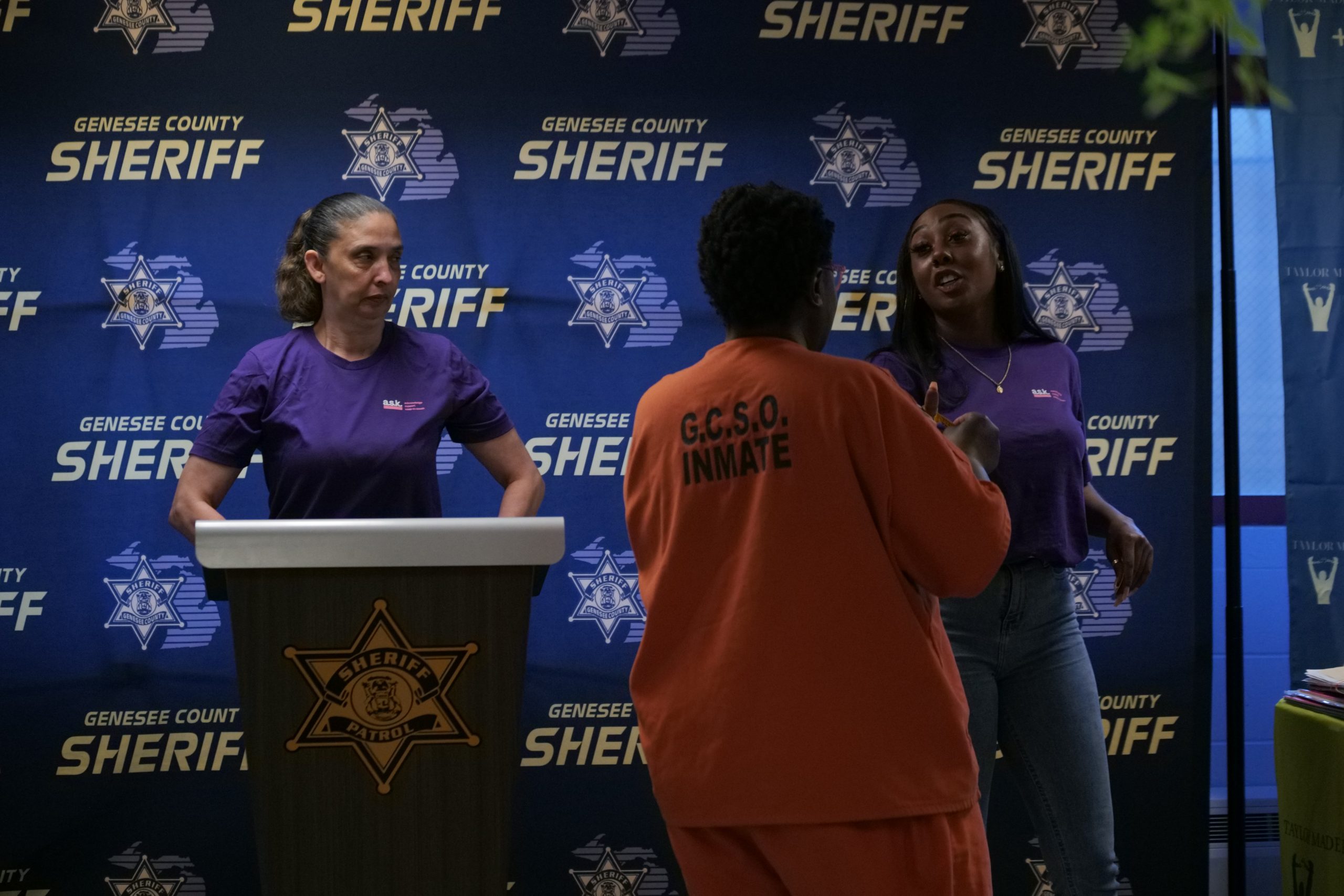 Dee Dee Taylor, founder of Taylor Made Re-Entry, made stop at the Genesee County Jail on Friday May 17, 2024, to talk to inmates about the importance taking care of their mental health. Taylor is the sister of Breonna Taylor, who was tragically killed by Louisville, Kentucky police during a botched raid. (Teiko Cornelius