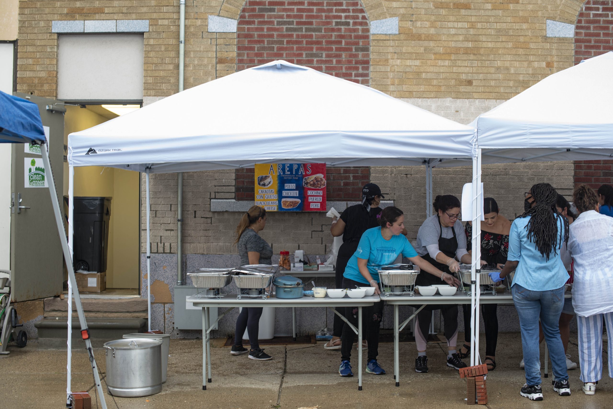 Vendors tend to attendees looking to try Rosanna Calma’s arepas from Venezuela during the Latinx Tech Center’s 20th anniversary celebration on June 26, 2021. (Santiago Ochoa | Flint Beat)