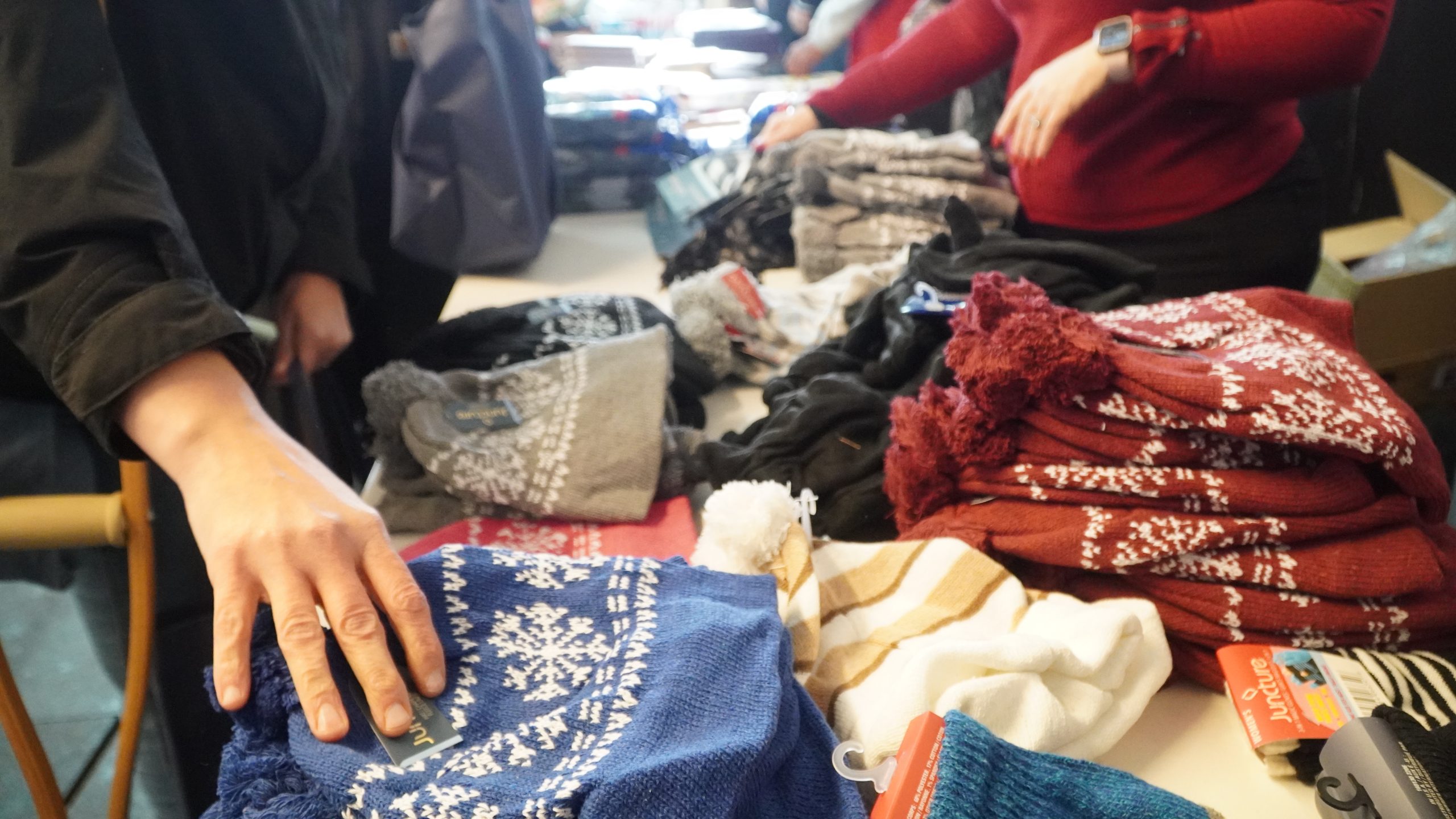A young participant carrying his Christmas gifts and treats from Claressa Shields’ annual Christmas giveaway on Dec. 23, 2022. (Joshua Johnson | Flint Beat)Piles of food bags were given out during Claressa Shields’ annual Christmas giveaway on Dec. 23, 2022. (Joshua Johnson | Flint Beat)The signature wall at AT Fitness during Claressa Shields’ annual Christmas giveaway on Dec.23, 2022. (Joshua Johnson | Flint Beat)Hats and gloves were distributed at Claressa Shields’ annual Christmas giveaway on Dec.23, 2022. (Joshua Johnson | Flint Beat)