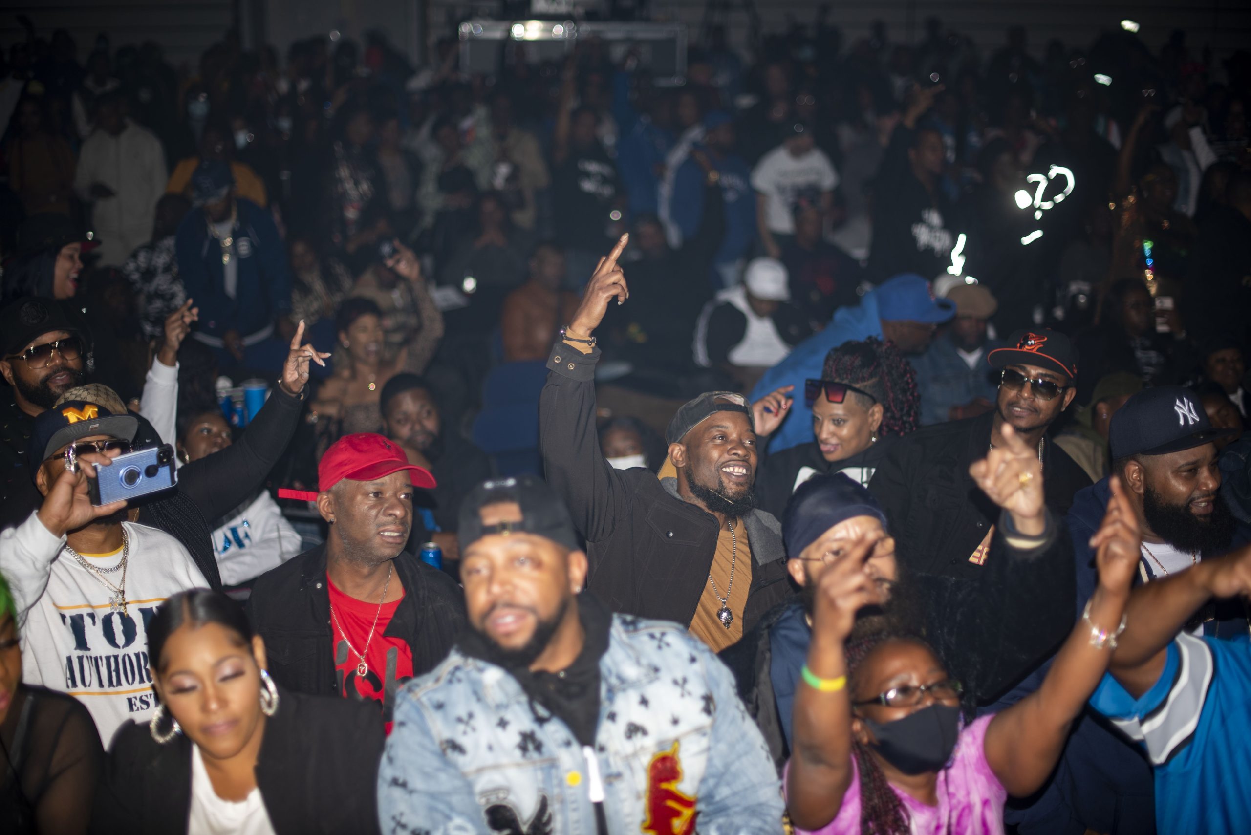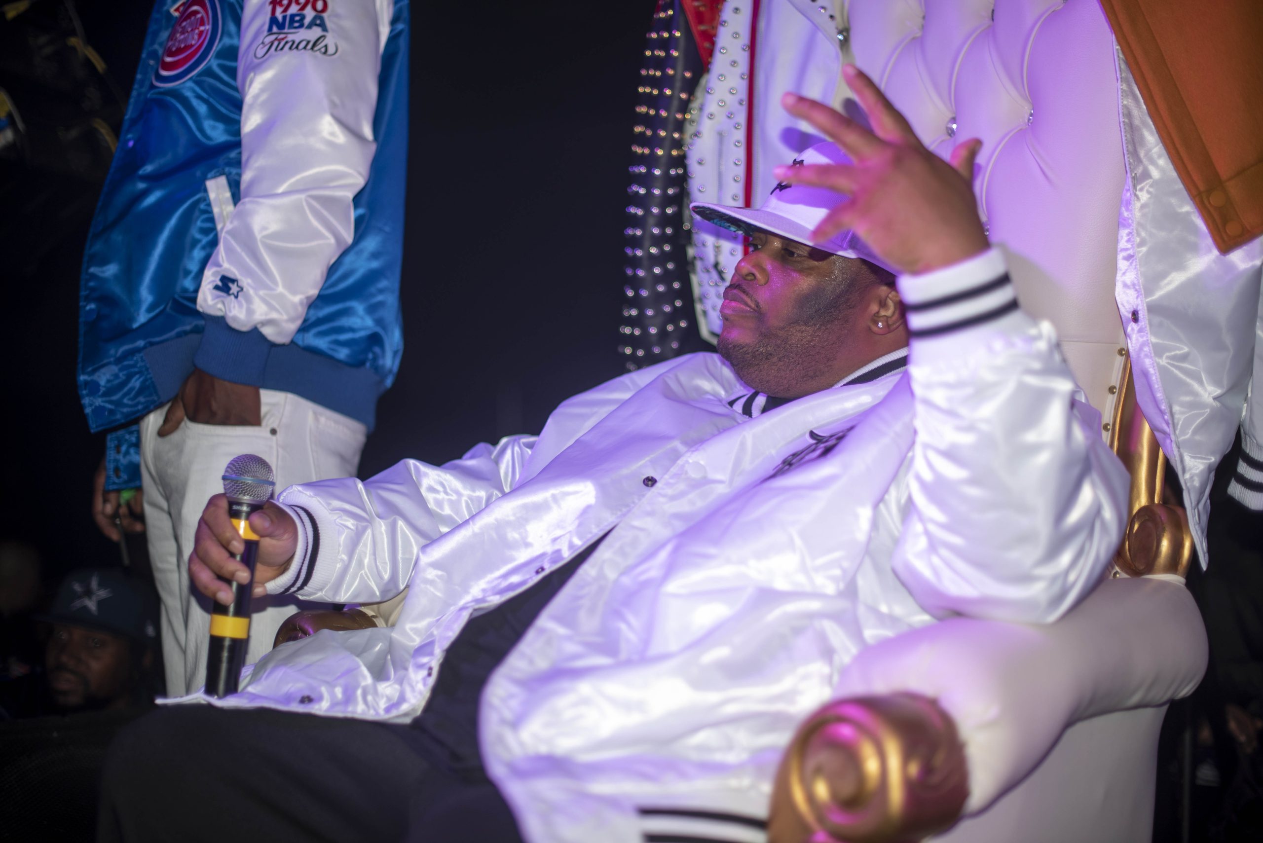 Ira ‘Bootleg’ Dorsey asks the crowd to sing and gesture along as he prepares to sing “F.B.I.,” the titular song for their most popular album of the same name on Saturday, Oct. 30, 2021, inside the Dort Financial Center in Burton, Mich. (Santiago Ochoa | Flint Beat)Event attendees follow along as Ira ‘Bootleg’ Dorsey and Raheen ‘Shoestring’ Peterson sing one of their most popular songs, F.B.I on Saturday, Oct. 30, 2021, inside the Dort Financial Center in Burton, Mich. (Santiago Ochoa | Flint Beat)Dia ‘Shotgun’ Peacock raises his hands mid-song while performing one of Top Authority’s hit songs, “93” from their freshman album “Somethin’ to Blaze to” on Saturday, Oct. 30, 2021, inside the Dort Financial Center in Burton, Mich . (Santiago Ochoa | Flint Beat)Diallo ‘Flex’ Peacock performs the final song of the night for the Dayton Family/Top Authority Versus event on Saturday, Oct. 30, 2021, inside the Dort Financial Center in Burton, Mich . (Santiago Ochoa | Flint Beat)Raheen ‘Shoestring’ Peterson works up a sweat during the Dayton Family and Top Authority’s two-hour-long performance at the Dort Financial Center on Saturday, Oct. 30, 2021 in Burton, Mich . (Santiago Ochoa | Flint Beat)Raheen ”Shoestring’ Peterson sits on his golden throne with a microphone in hand during the Dayton Family versus Top Authority event in Burton, Mich . Dayton Family used gold-colored thrones while Top Authority used silver. The night’s host, Jake the Flake, used a special all-black throne. The event took place on Saturday, Oct. 30, 2021 inside the Dort Financial Center. (Santiago Ochoa | Flint Beat)Dia ‘Shotgun’ Peacock raps on stage during the Dayton Family|Top Authority Versus event held at the Dort Financial Center in Burton, Mich on Saturday, Oct. 30, 2021. (Santiago Ochoa | Flint Beat)Bernard Terry Jr. (left), Jermaine Terry (center) and Cory Peterson (right) hold up a lifetime achievement award gifted to their late father, Bernard Terry Sr. on Saturday, Oct. 30, 2021, at the Dort Financial Center in Burton, Mich. The award was preceded by a video in memoriam where a handful of artists who worked with Terry Sr. in the past reflected on their experiences with him while in the studio. (Santiago Ochoa | Flint Beat)