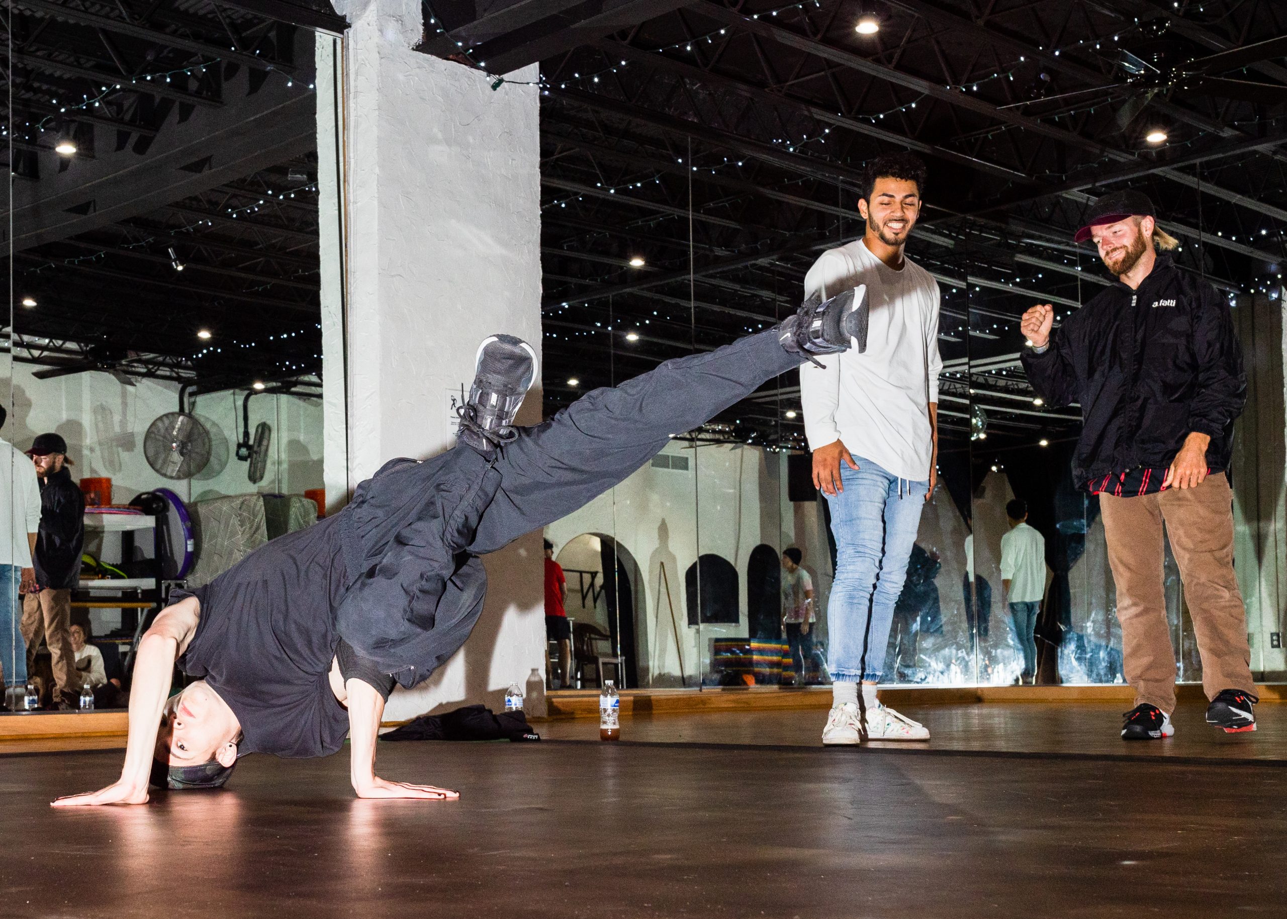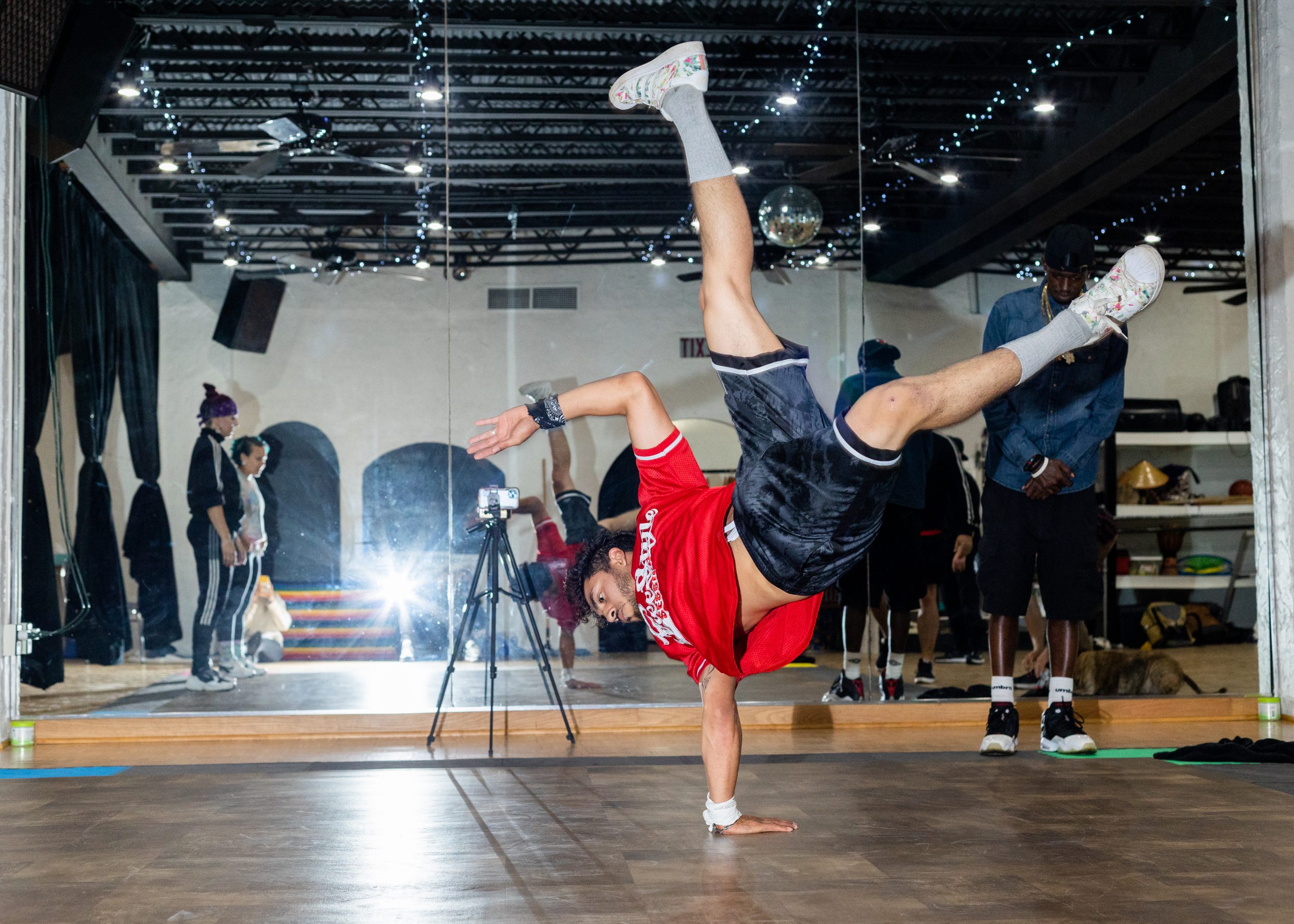 The Hurds are not only dance educators, company leaders, and FLI-City’s owners. They are also the founders of Vertical Ambition Crew, a breaking group (“Don’t call it breakdancing,” you’ll be told by any true b-boy or b-girl) that practices every Wednesday night at FLI-City.