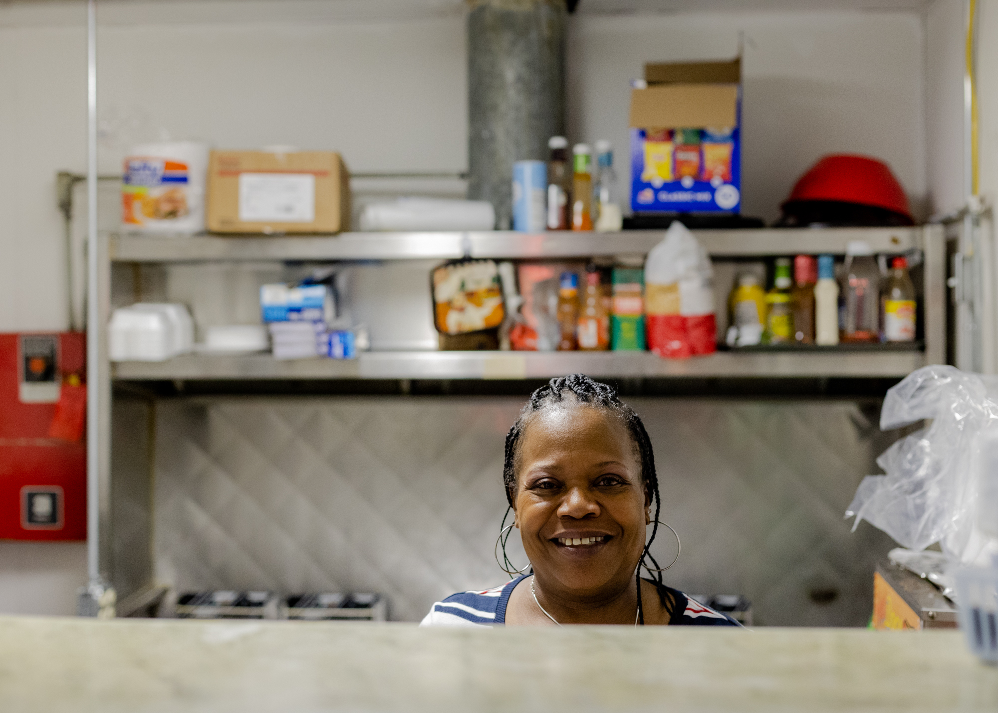 Roberta Short, of Flint, makes tacos in the kitchen of The New Misty 50’s on Clio Road on the north side of Flint, Mich. on April 12, 2022. (KT Kanazawich | Flint Beat)