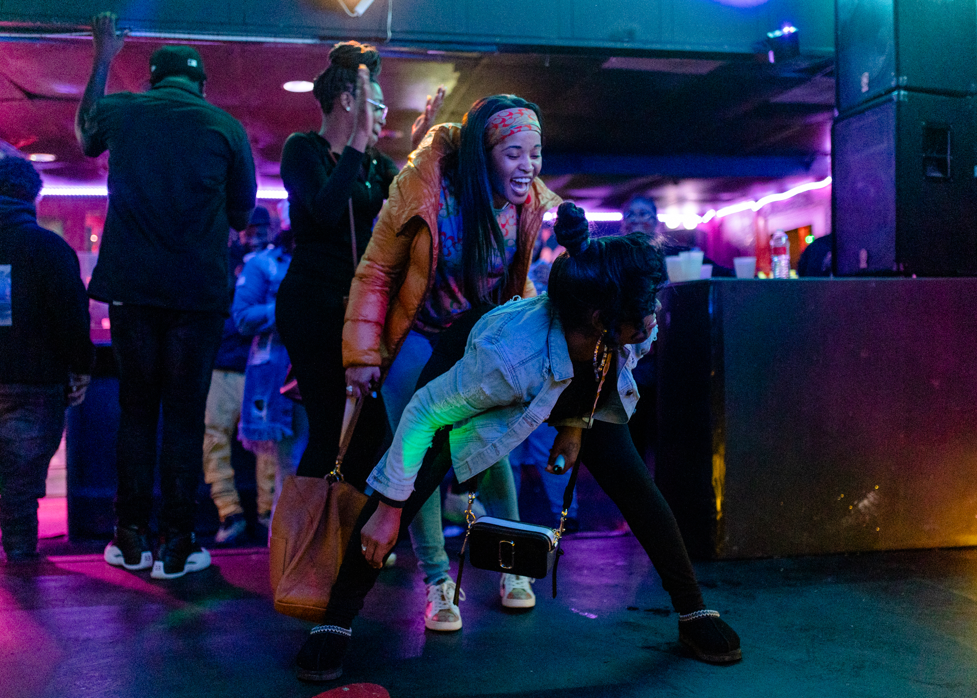 Club goers dance at the Vets Club on the south side of Flint, Mich. during R&B Thursdays on April 29, 2022. (KT Kanazawich | Flint Beat)