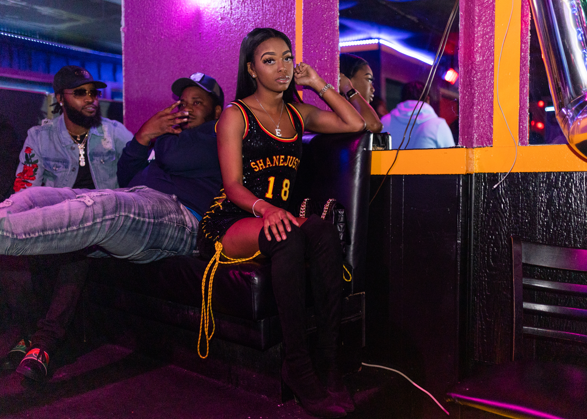Bri Jones, of Nashville, TN, dances with friends at Vibez nightclub on the north side of Flint, Mich. during the Last Night Out (Sundays at Vibez) event on April 10, 2022. (KT Kanazawich | Flint Beat)Ericka Woodberry sits at a booth in Vibez nightclub on the north side of Flint, Mich. during the Last Night Out (Sundays at Vibez) event on April 10, 2022. (KT Kanazawich | Flint Beat)