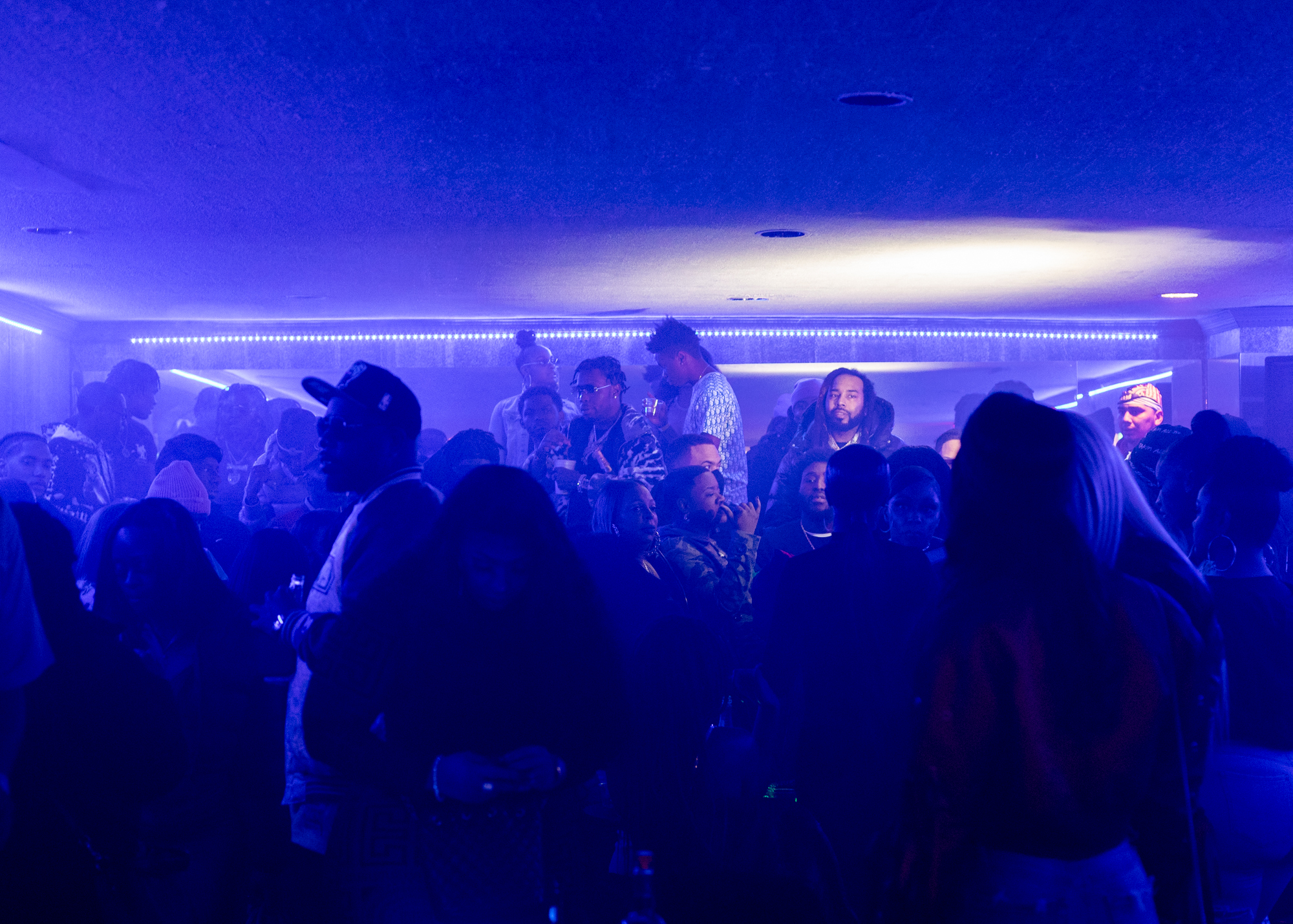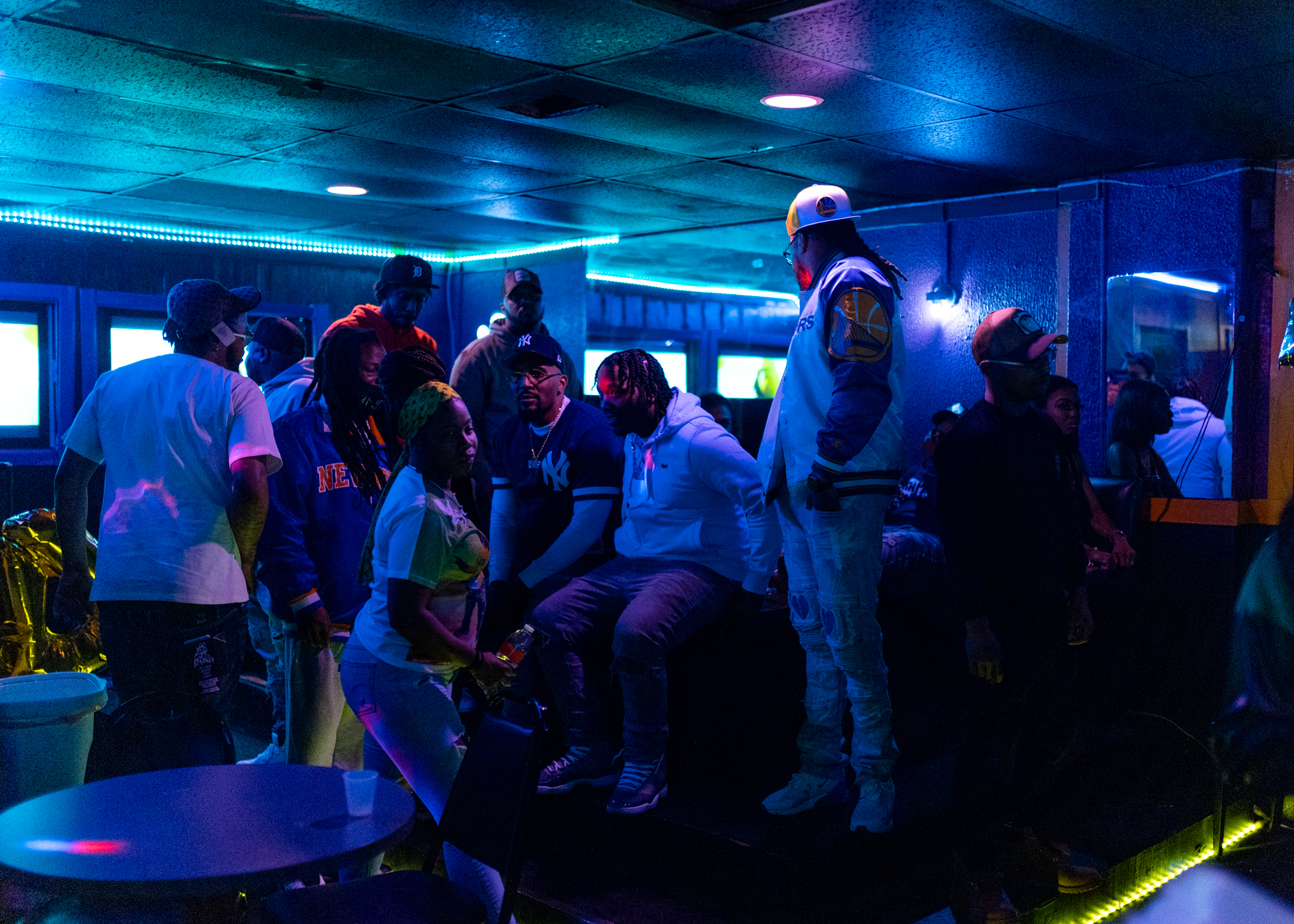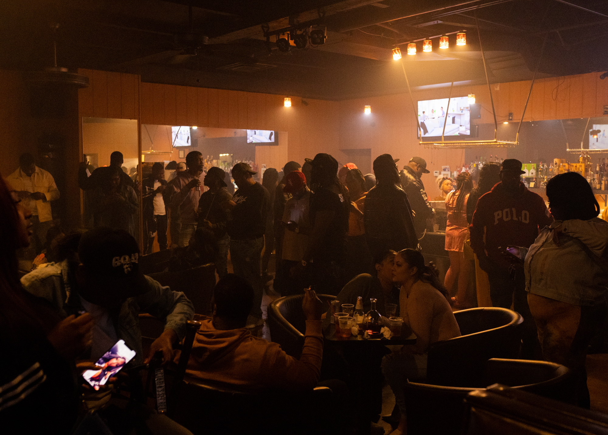 Bartenders and guests present bottles with sparklers at Vibez nightclub on the north side of Flint, Mich. during the Last Night Out (Sundays at Vibez) event on April 10, 2022. (KT Kanazawich