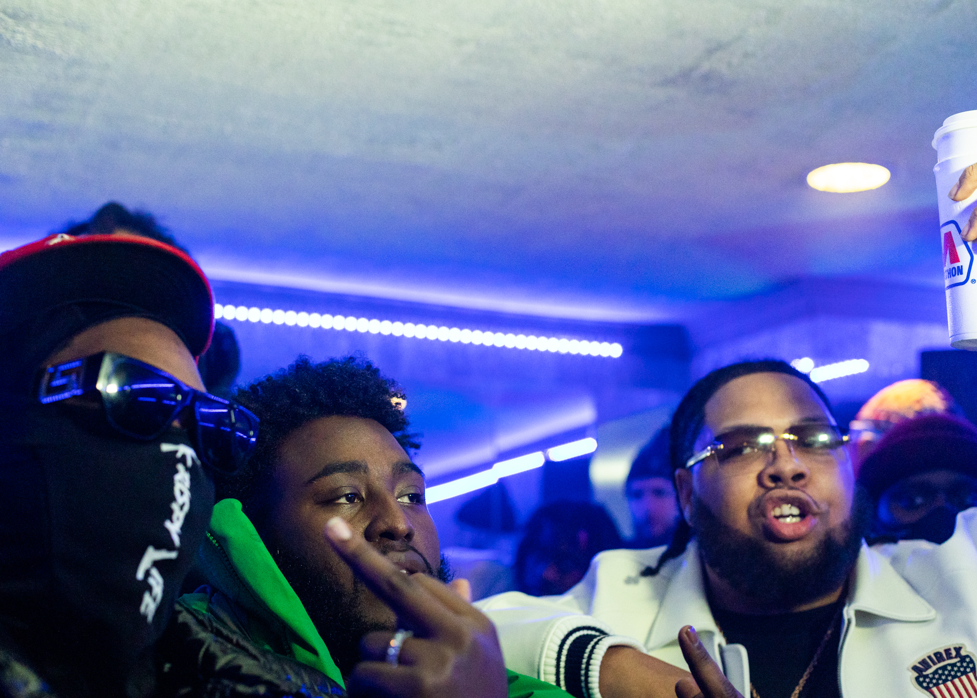 The crowd at Club Quorum on the north side of Flint, Mich. waits for performances by Flint rapper Louie Ray and New York rapper Dave East on Feb. 13, 2022. (KT Kanazawich | Flint Beat)Flint rapper Louie Ray performs at Club Quorum on Feb. 13, 2022. (KT Kanazawich | Flint Beat)Flint rappers YSR Gramz (center) and Krispy Life Kidd (right) at Club Quorum on Feb. 13, 2022. (KT Kanazawich | Flint Beat)