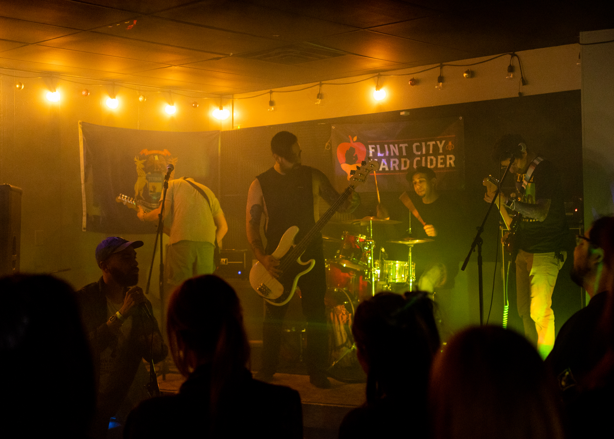The band Steam Roller plays a show at Flint City Hard Cider Co. in downtown Flint, Mich. on June 3, 2022. (KT Kanazawich | Flint Beat)