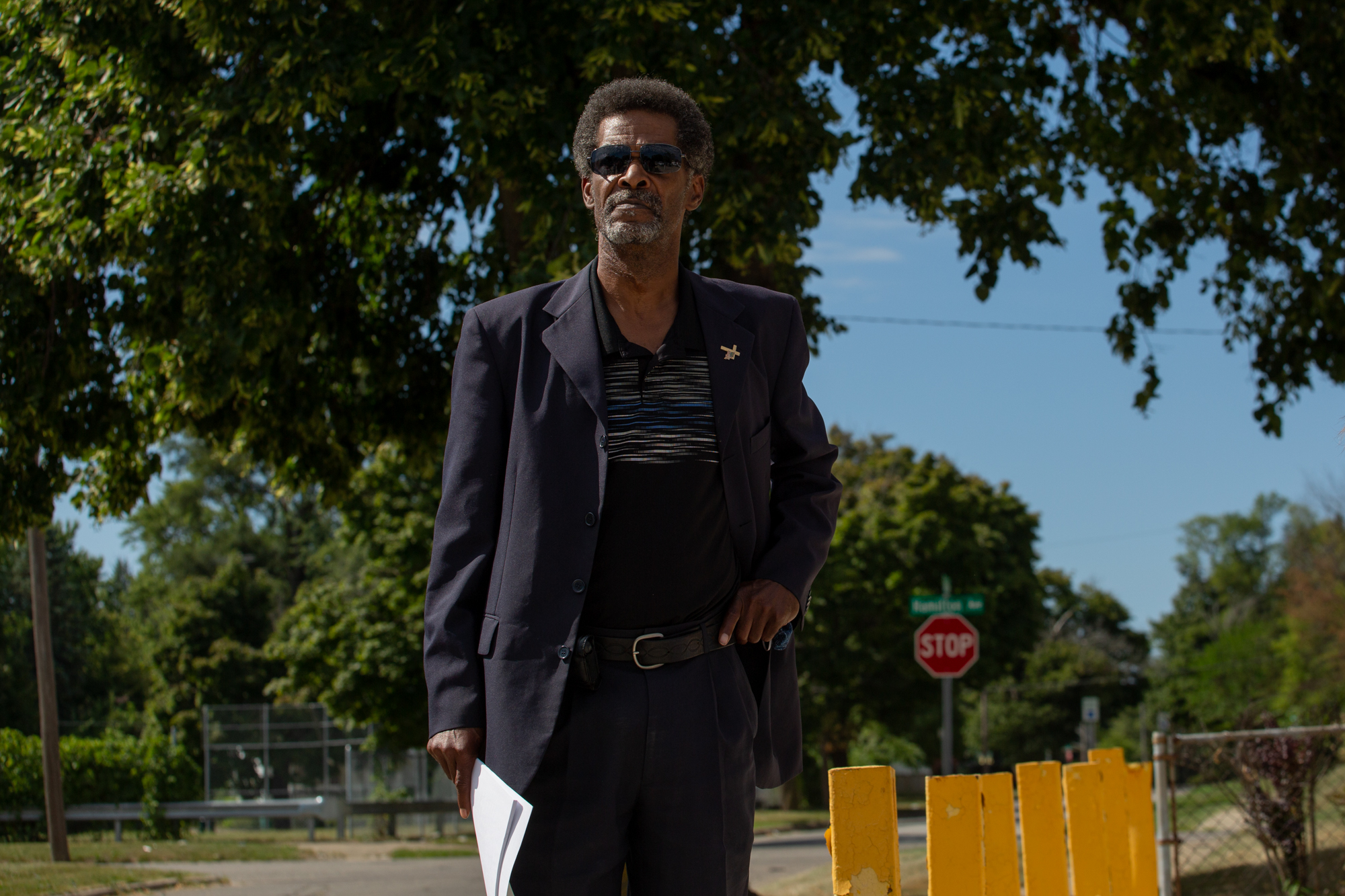 Eric Mays attends former Flint Police Chief and Genesee County Sheriff Candidate Tim Johnsons press release the morning of Friday, July 17th, 2020 to discuss rising crime statistics in the City of Flint. (KT Kanazawich | Flint Beat.)