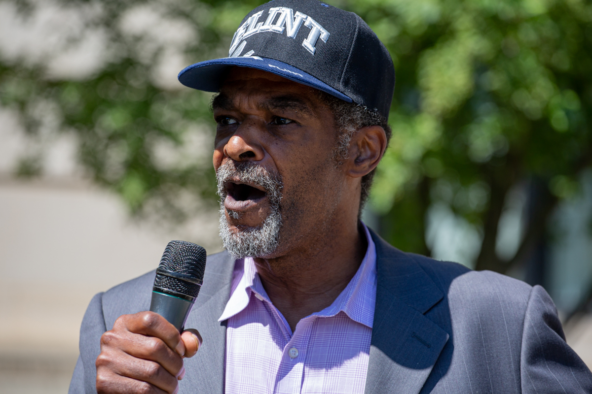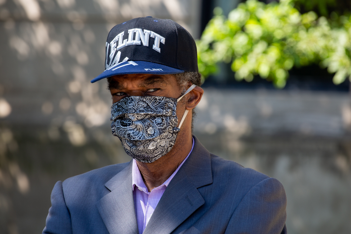 Eric Mays and other local leaders held a press conference on Aug. 21, 2020, to discuss the proposed settlement for the Flint Water Crisis. (KT Kanazawich | Flint Beat)