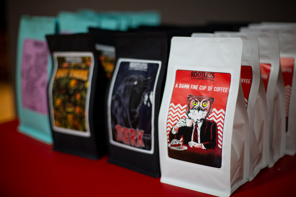 That moment sparked the Rootless signature blend, aptly titled “A Damn Fine Cup Of Coffee.” Fans of the TV series Twin Peaks will immediately recognize the name as well as the artwork on the bag itself as an homage to the show.