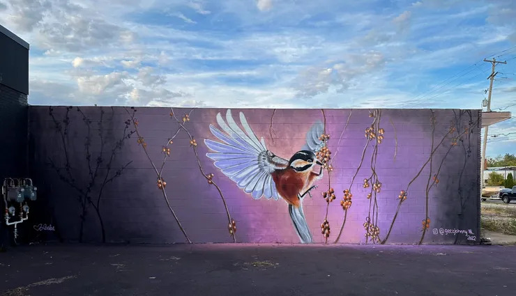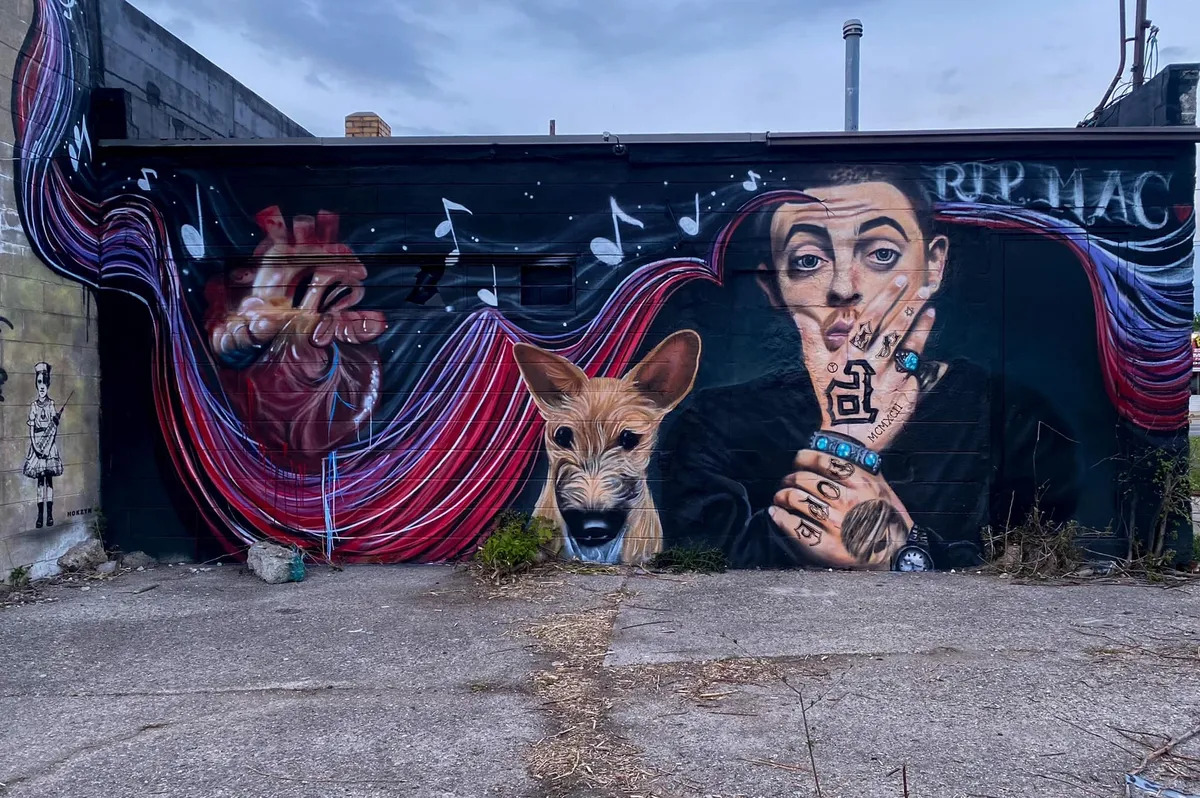 In 2023, he painted his first mural for the Flint Public Art Project, a non-profit collaborative that aims to integrate art into public spaces that are vacant or underutilized. The mural depicts Mac Miller, a hip-hop rapper and producer who tragically died from a drug overdose at age 26 in 2018. This piece is exhibited on the back wall of Julie’s Pawn & Jewelry Sales on the corner of 12th and Saginaw Street.