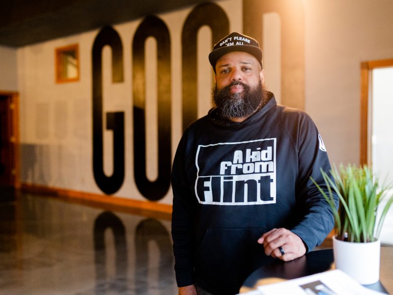 With that, Robinson adjusted his hoodie, “a kid from Flint” in white lettering across the chest, and went to help his wife pass out teacher appreciation gift bags at Good Church’s entrance.