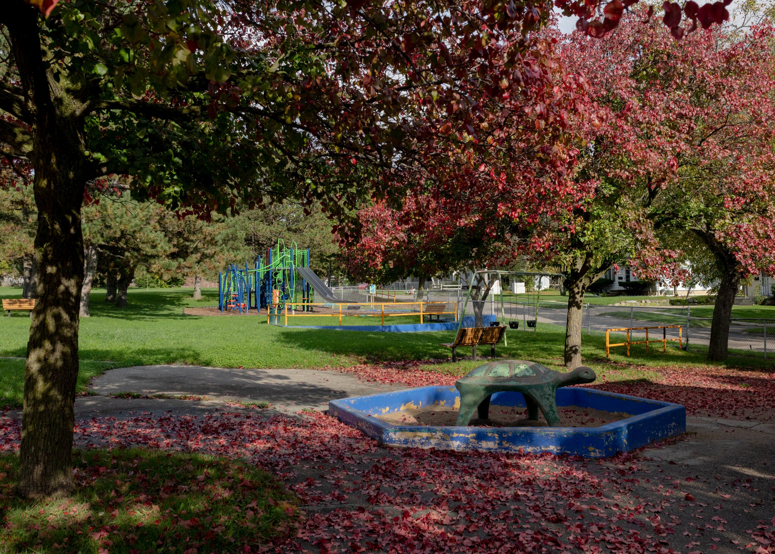 Autumn foliage at Max Brandon Park on the north side of Flint, Mich. on Oct. 6, 2021. (KT Kanazawich | Flint Beat)Red leaves scatter the ground at Sarginson Park on the west side of Flint, Mich. on Oct. 8, 2021. (KT Kanazawich | Flint Beat)Tunnel of autumn trees in the Woodcroft neighborhood on the west side of Flint, Mich. on Oct. 8, 2021. (KT Kanazawich | Flint Beat)Autumn leaves cover the yard of a home in the Woodcroft neighborhood on the west side of Flint, Mich. on Oct. 8, 2021. (KT Kanazawich | Flint Beat)Brownell Boulevard on the north side of Flint, Mich. on Oct. 6, 2021. (KT Kanazawich | Flint Beat) Scarecrows can be seen throughout Flint as part of the annual Glendale Hills Scarecrow Convention on Oct. 8, 2021. (KT Kanazawich | Flint Beat)Asbury Farms on the east side of Flint on Oct. 11, 2021. The farm, which started as a single garden in 2011, has grown to cover 50 vacant lots and is winterized to grow food year-round. (KT Kanazawich | Flint Beat) Red leaves scatter the ground at Sarginson Park on the west side of Flint on Oct. 8, 2021. The park has a picnic pavilion, playground, basketball courts, and a softball field. (KT Kanazawich | Flint Beat)Flint Park Lake Park on the north side of Flint on Oct. 11, 2021. One hundred years ago, the park was transformed into an amusement park called Flint Park. After a 40-year run, the park closed its doors in 1961. (KT Kanazawich | Flint Beat)Fallen autumn leaves at Sarginson Park on the west side of Flint, Mich. on Oct. 8, 2021. (KT Kanazawich | Flint Beat)Glenwood Cemetery on the west side of Flint on Oct. 10, 2021. The cemetery was founded in 1857 and is the burial place of many of the city’s notables. (KT Kanazawich | Flint Beat) A burst of orange disguises an abandoned house on the south side of Flint on Oct. 10, 2021. (KT Kanazawich | Flint Beat)Max Brandon Park on the north side of Flint on Oct. 6, 2021. The park makes up 107 acres and is one of the largest open spaces in the city. (KT Kanazawich | Flint Beat)The sunset over the Flint River in Flint on Oct. 8, 2021. Flowing through Mott Park, the river is often used for recreation like kayaking and the annual Flint River Floatilla. (KT Kanazawich | Flint Beat) Glenwood Cemetery on the west side of Flint on Oct. 10, 2021. The cemetery is home to 56 different types of trees. (KT Kanazawich | Flint Beat)