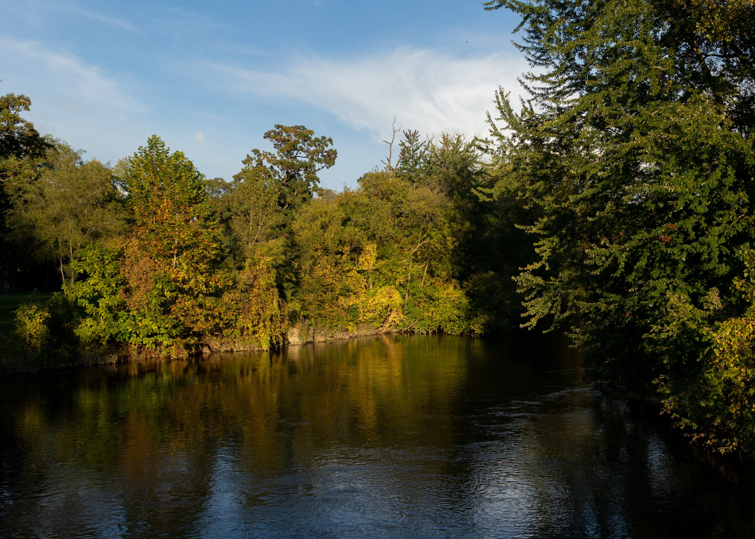 The sun set son Oct. 8, 2021, over the Flint River in Mott Park on the west side of Flint, Mich. (KT Kanazawich