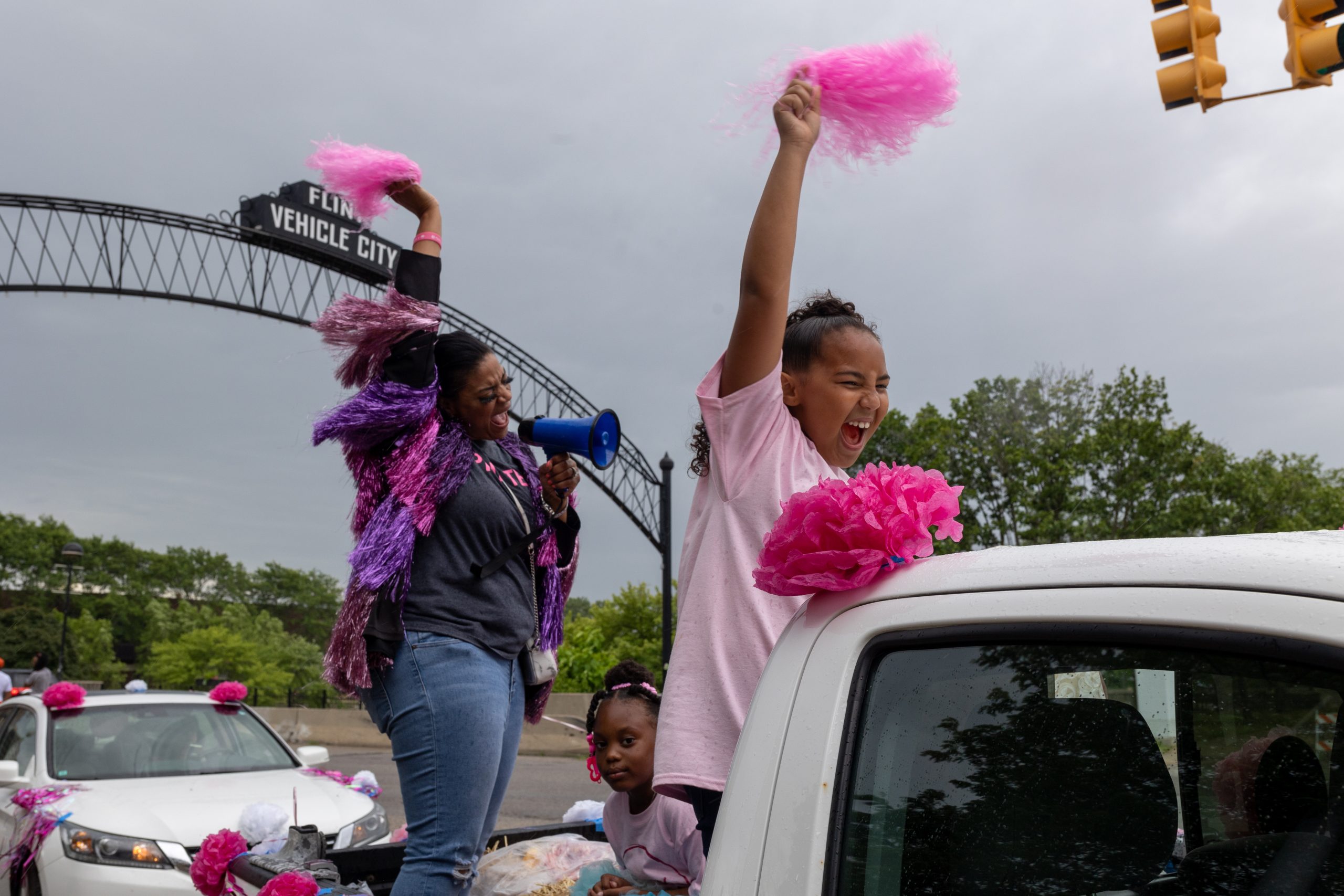 The Sparkle Pink Club for Girls is an empowerment and self-esteem boosting club based in Flint, Mich. Their float was part of the Champions Parade celebrating Juneteenth on June 19, 2021. (KT Kanazawich | Flint Beat)