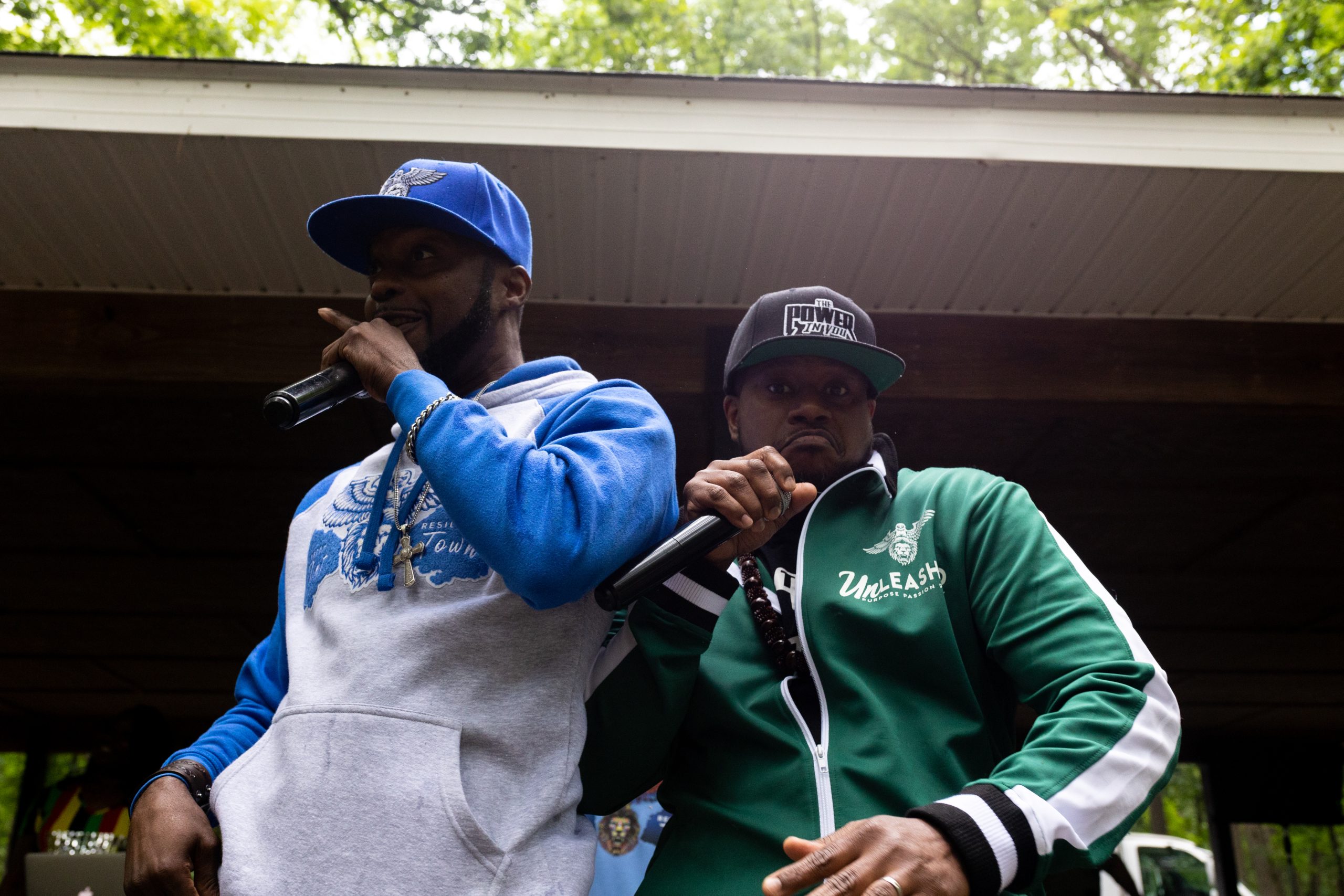 Shanta Smith, 45, and Antoine Brown, 50 of Flint are TBR Music Group. They performed a song “Keys to the Kingdom” at the Traditional Juneteenth Celebration at Max Brandon Park in Flint, Mich. on June 19, 2021. (KT Kanazawich | Flint Beat)Eugene Williams, 68, and Frank Haralson, 75, both of Flint, are part of the Buffalo Soldiers motorcycle group and were honored at the Traditional Juneteenth Celebration at Max Brandon Park in Flint, Mich. on June 19, 2021 for their commitment to culture. (KT Kanazawich | Flint Beat)
