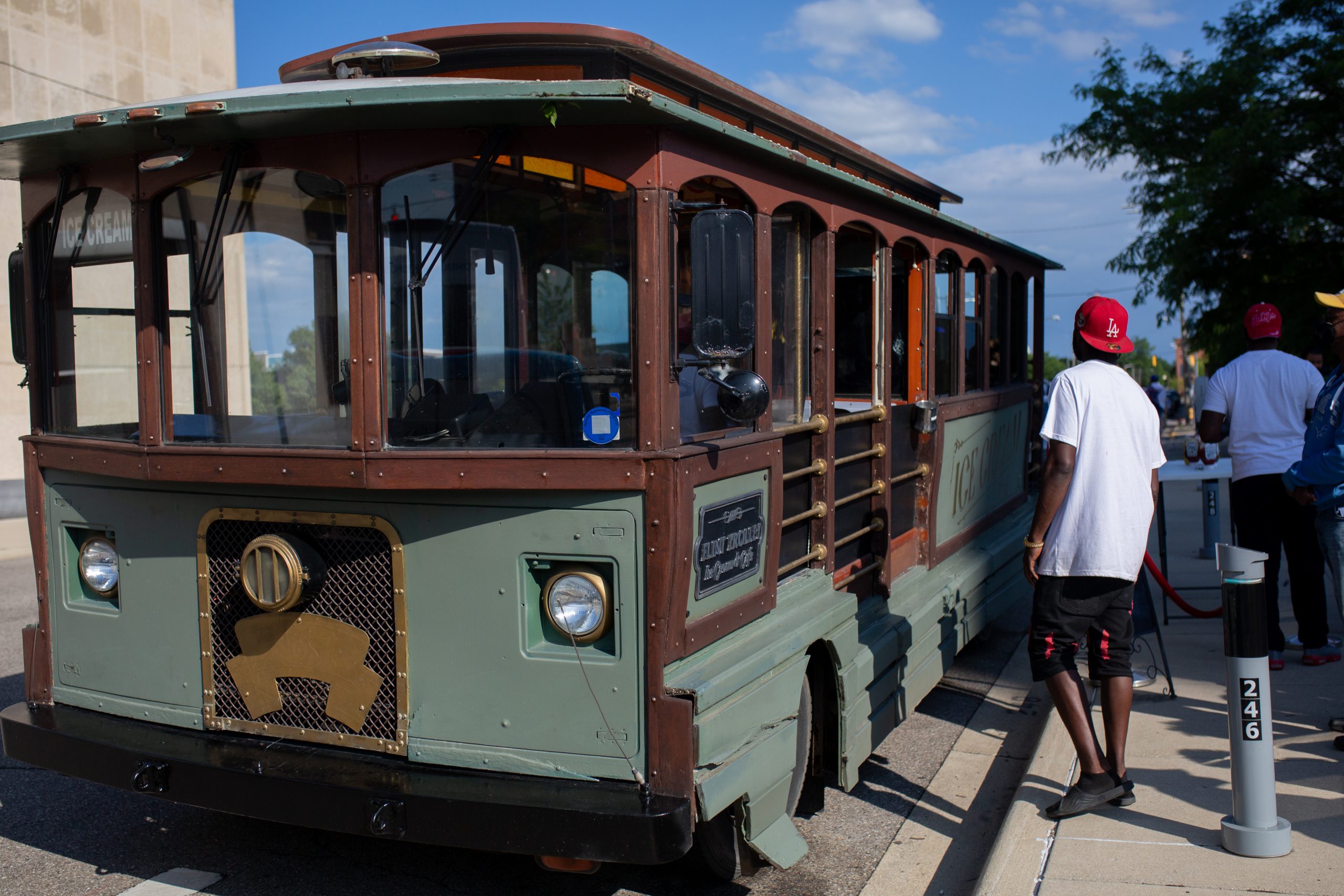 A Juneteenth celebrations attendee waits for his food at the Flint Trolley Ice Cream & Cafe in Downtown Flint on June 19, 2021. (KT Kanazawich | Flint Beat)