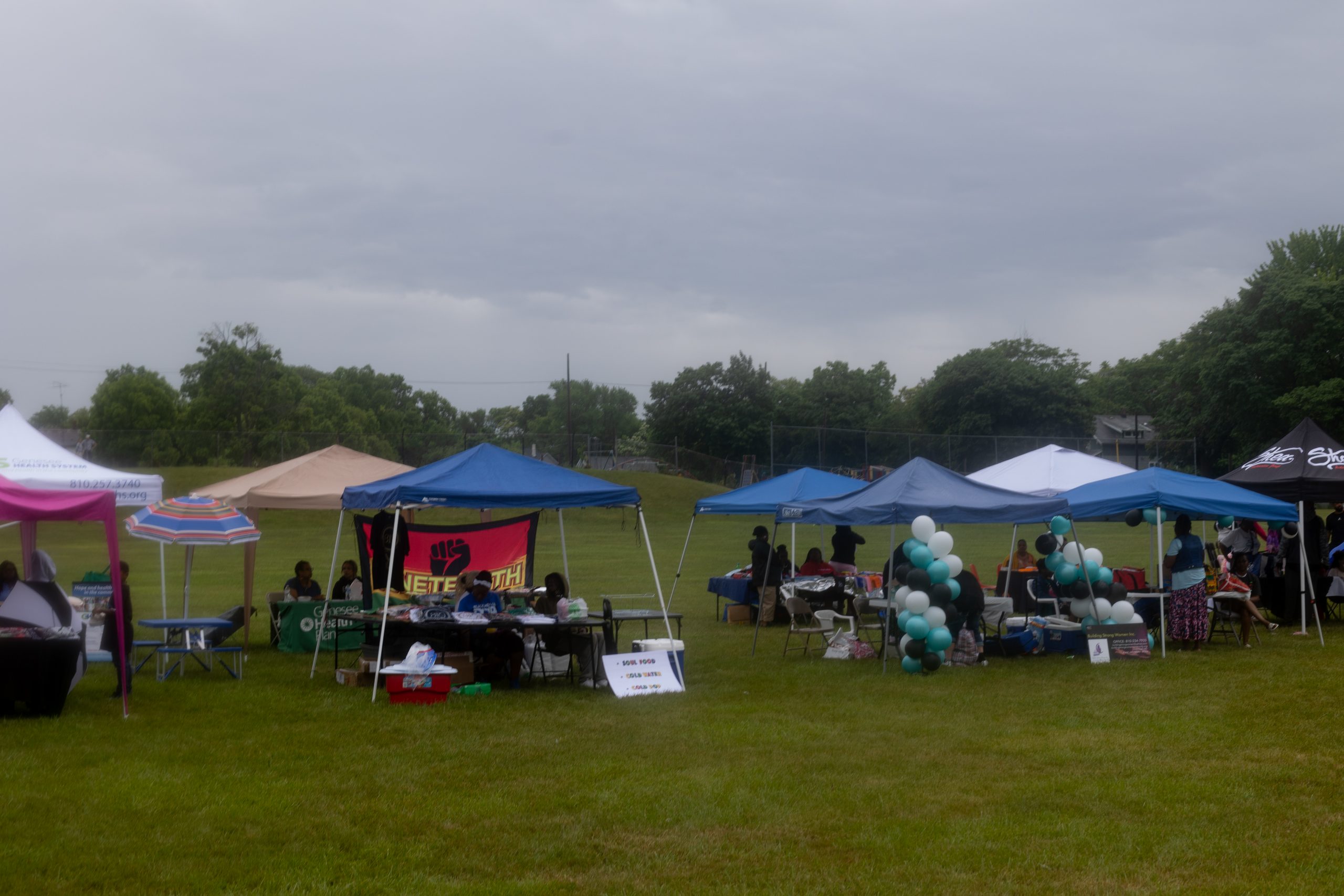 Vendors set up awaiting parade goers in the back of Berston Field House in Flint, Mich. for the Black Wall Street Juneteenth event on June 19, 2021. (KT Kanazawich | Flint Beat)