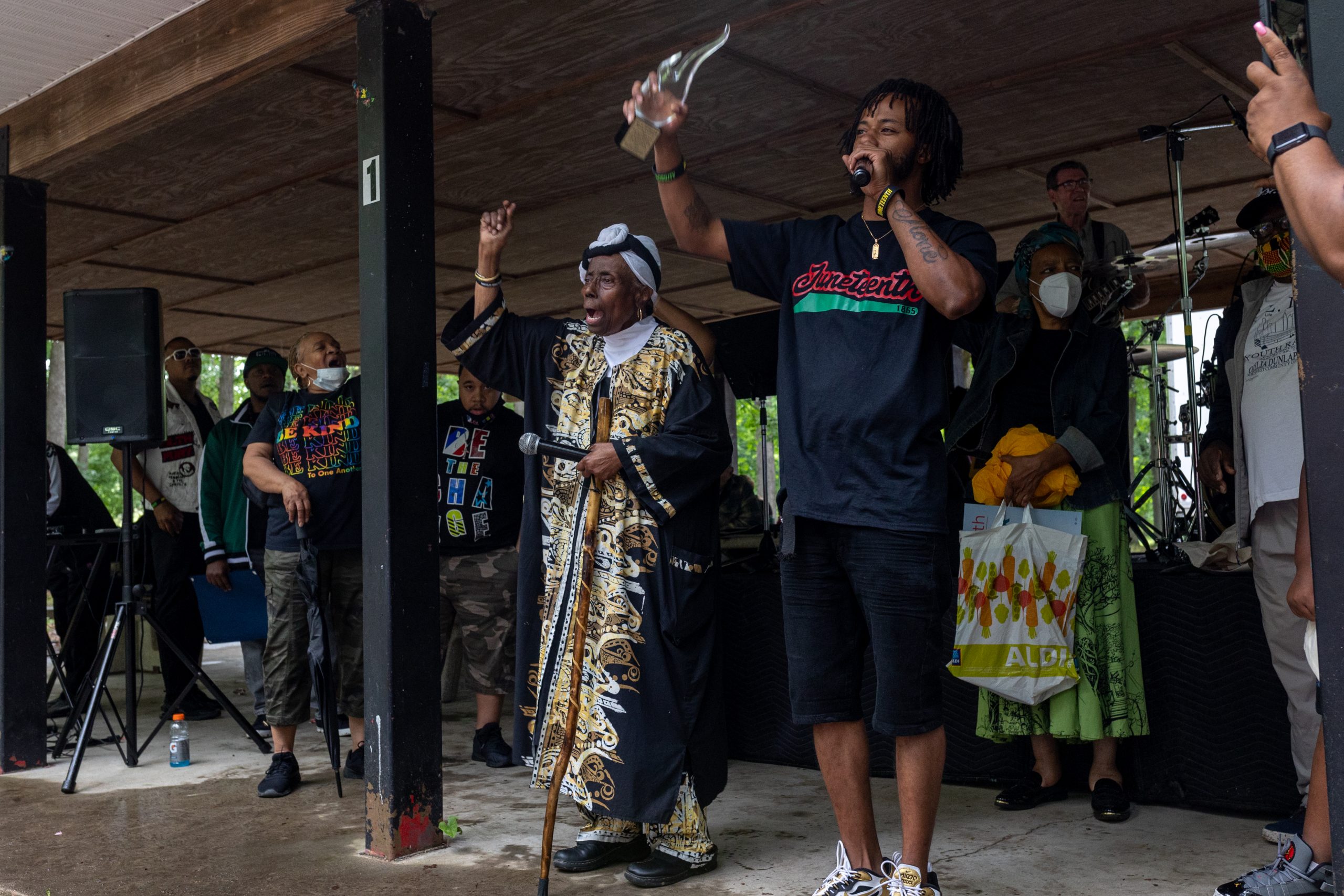 A mile away, at Max Brandon Park, the Traditional Juneteenth Celebration was hosting its Freedom Festival, where hundreds of residents came together to honor Juneteenth itself as well as community members, including E. Hill DeLoney.