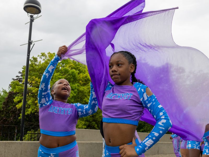 Lexi Walker, 10, and Brooklyn Gaines, 9, oF Flint, lead the Amethyst Elite Dance Company. They prepared for two months to perform at the Champions Parade in Flint, Mich. to celebrate Juneteenth on June 19, 2021. (KT Kanazawich