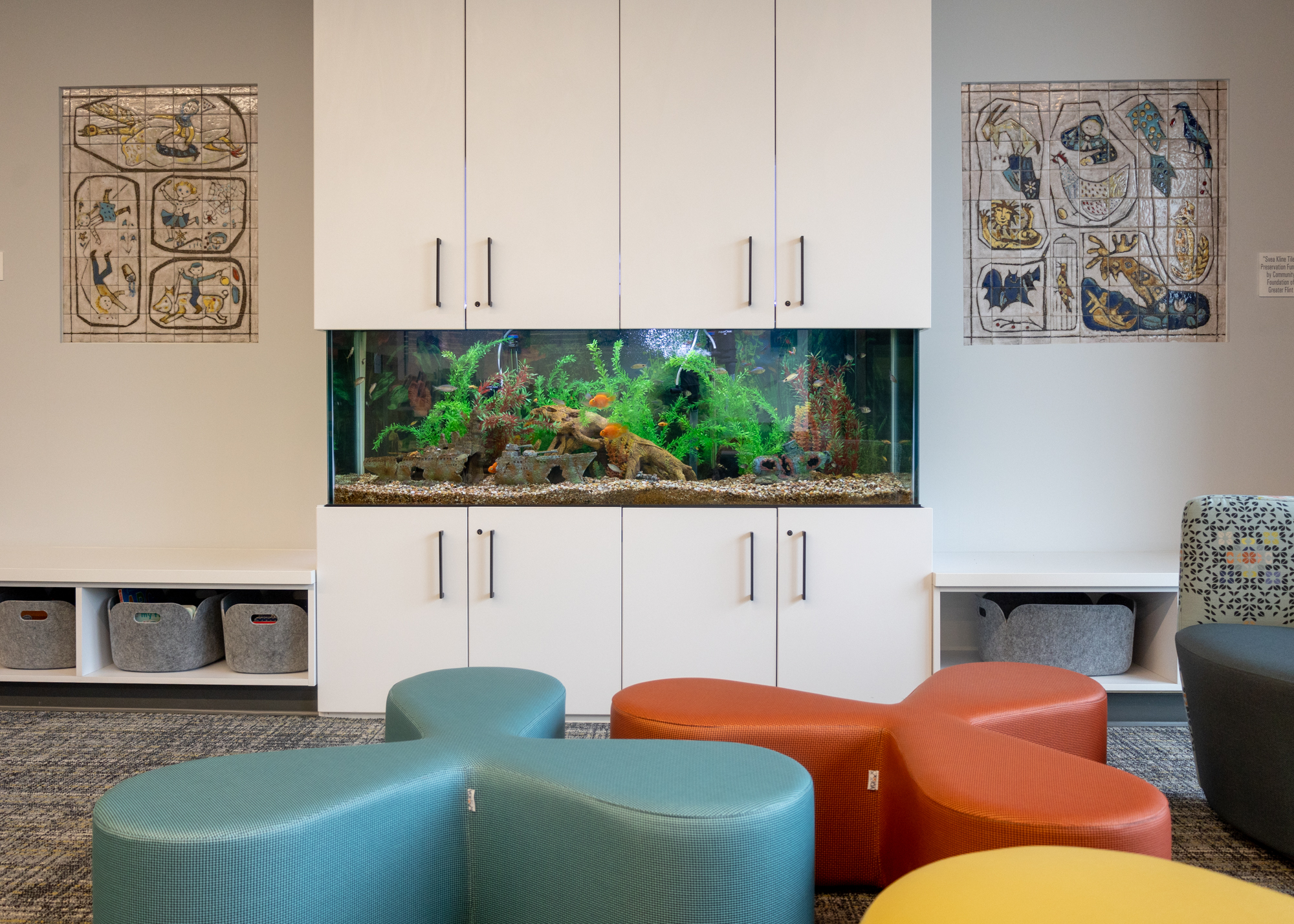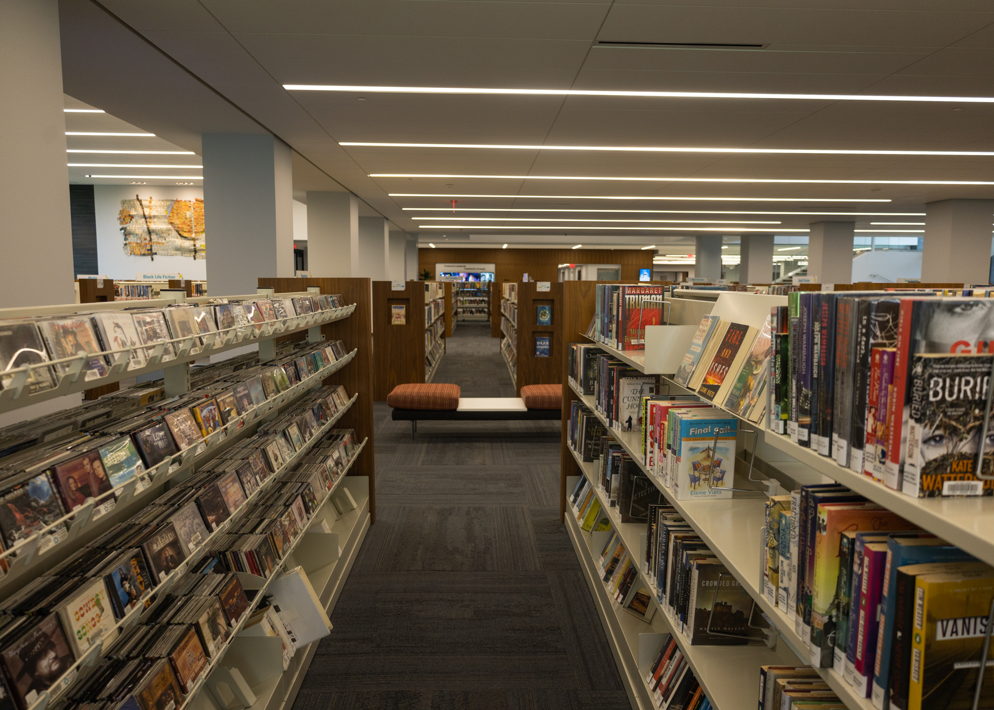 A view of the children’s section of the renovated Flint Public Library in Flint, Mich. on May 18, 2022. The library is celebrating its grand opening May 19-21, 2022. (KT Kanazawich | Flint Beat)Inside the renovated Flint Public Library in Flint, Mich. on May 18, 2022. The original Svea Kline mosaic tiles to the left and right of the children’s area fish tank were preserved from the original building’s design. The library is celebrating its grand opening May 19-21, 2022. (KT Kanazawich | Flint Beat)Inside the renovated Flint Public Library in Flint, Mich. on May 18, 2022. The library is celebrating its grand opening May 19-21, 2022. (KT Kanazawich | Flint Beat)A view of the children’s section of the renovated Flint Public Library in Flint, Mich. on May 18, 2022. The library is celebrating its grand opening May 19-21, 2022. (KT Kanazawich | Flint Beat)Inside the renovated Flint Public Library in Flint, Mich. on May 18, 2022. The library is celebrating its grand opening May 19-21, 2022. (KT Kanazawich | Flint Beat)Inside the renovated Flint Public Library in Flint, Mich. on May 18, 2022. The original Svea Kline mosaic tiles in the children’s section seating area were preserved from the original building’s design. The library is celebrating its grand opening May 19-21, 2022. (KT Kanazawich | Flint Beat)An ‘Everbrite’ wall lights up inside the renovated Flint Public Library in Flint, Mich. on May 18, 2022. The library is celebrating its grand opening May 19-21, 2022. (KT Kanazawich | Flint Beat)Inside the children’s program room at the renovated Flint Public Library in Flint, Mich. on May 18, 2022. The library is celebrating its grand opening May 19-21, 2022. The mural in the courtyard was painted by local muralist Kevin Burdick. (KT Kanazawich | Flint Beat)Inside the renovated Flint Public Library in Flint, Mich. on May 18, 2022. The library is celebrating its grand opening May 19-21, 2022. (KT Kanazawich | Flint Beat)The courtyard outside the renovated Flint Public Library in Flint, Mich. on May 18, 2022. The library is celebrating its grand opening May 19-21, 2022. (KT Kanazawich | Flint Beat)Inside the Charles Stewart Mott Community Room at the renovated Flint Public Library in Flint, Mich. on May 18, 2022. The library is celebrating its grand opening May 19-21, 2022. (KT Kanazawich | Flint Beat)Inside the renovated Flint Public Library in Flint, Mich. on May 18, 2022. The library is celebrating its grand opening May 19-21, 2022. (KT Kanazawich | Flint Beat)An El Anatsui artwork from Flint’s Mott Warsh gallery hangs inside the renovated Flint Public Library in Flint, Mich. on May 18, 2022. The library is celebrating its grand opening May 19-21, 2022. (KT Kanazawich | Flint Beat)Inside the renovated Flint Public Library in Flint, Mich. on May 18, 2022. The library is celebrating its grand opening May 19-21, 2022. (KT Kanazawich | Flint Beat)A seating area inside the renovated Flint Public Library in Flint, Mich. on May 18, 2022. The library is celebrating its grand opening May 19-21, 2022. (KT Kanazawich | Flint Beat)Inside the renovated Flint Public Library in Flint, Mich. on May 18, 2022. The library is celebrating its grand opening May 19-21, 2022. (KT Kanazawich | Flint Beat)Inside the renovated Flint Public Library in Flint, Mich. on May 18, 2022. The library is celebrating its grand opening May 19-21, 2022. (KT Kanazawich | Flint Beat)A seating area inside the renovated Flint Public Library in Flint, Mich. on May 18, 2022. The library is celebrating its grand opening May 19-21, 2022. (KT Kanazawich | Flint Beat)Graphic novels displayed inside the renovated Flint Public Library in Flint, Mich. on May 18, 2022. The library is celebrating its grand opening May 19-21, 2022. (KT Kanazawich | Flint Beat)A portion of “The Hangout” area inside the renovated Flint Public Library in Flint, Mich. on May 18, 2022. The library is celebrating its grand opening May 19-21, 2022. (KT Kanazawich | Flint Beat)A view of the Learning Stairs inside the renovated Flint Public Library in Flint, Mich. on May 18, 2022. The stairs serve as a performance space and seating area for the library, which is celebrating its grand opening May 19-21, 2022. (KT Kanazawich | Flint Beat)Inside the renovated Flint Public Library in Flint, Mich. on May 18, 2022. The library is celebrating its grand opening May 19-21, 2022. (KT Kanazawich | Flint Beat)Inside the Sky Salon—named after former Flint Public Library director, Gloria Coles—of the newly renovated Flint Public Library in Flint, Mich. on May 18, 2022. Current communications manager Wanda Harden said the pattern of the chairs was designed based on an outfit Coles once wore on the cover of a magazine. (KT Kanazawich | Flint Beat)Inside the renovated Flint Public Library in Flint, Mich. on May 18, 2022. The library is celebrating its grand opening May 19-21, 2022. (KT Kanazawich | Flint Beat)Inside the renovated Flint Public Library in Flint, Mich. on May 18, 2022. The library is celebrating its grand opening May 19-21, 2022. (KT Kanazawich | Flint Beat)A wall of rotating artwork from Flint’s Mott Warsh gallery, inside the renovated Flint Public Library in Flint, Mich. on May 18, 2022. The library is celebrating its grand opening May 19-21, 2022. (KT Kanazawich | Flint Beat)Inside the renovated Flint Public Library in Flint, Mich. on May 18, 2022. The library is celebrating its grand opening May 19-21, 2022. (KT Kanazawich | Flint Beat)Conference rooms inside the renovated Flint Public Library in Flint, Mich. on May 18, 2022. The library is celebrating its grand opening May 19-21, 2022. (KT Kanazawich | Flint Beat)A view of the Greater Flint African American Sports Hall of Fame inside the renovated Flint Public Library in Flint, Mich. on May 18, 2022. The touchscreen (left) allows visitors to look through an alphabetical listing of Greater Flint African American sports figures. (KT Kanazawich | Flint Beat)A second floor seating area inside 