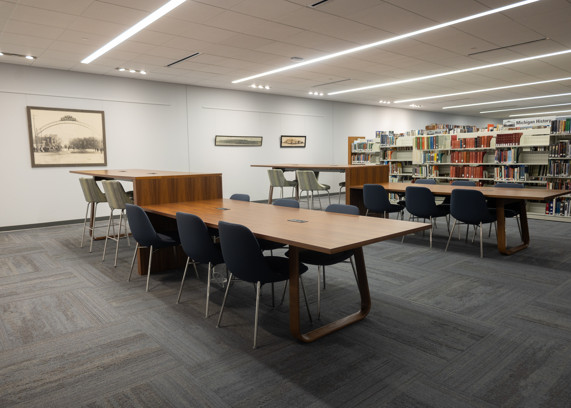 The Flint Public Library’s renovation project cost $30.6 million and was funded by Flint resident approved bonds, the Charles Stewart Mott Foundation, and capital campaign donations from individuals, families, and foundations.