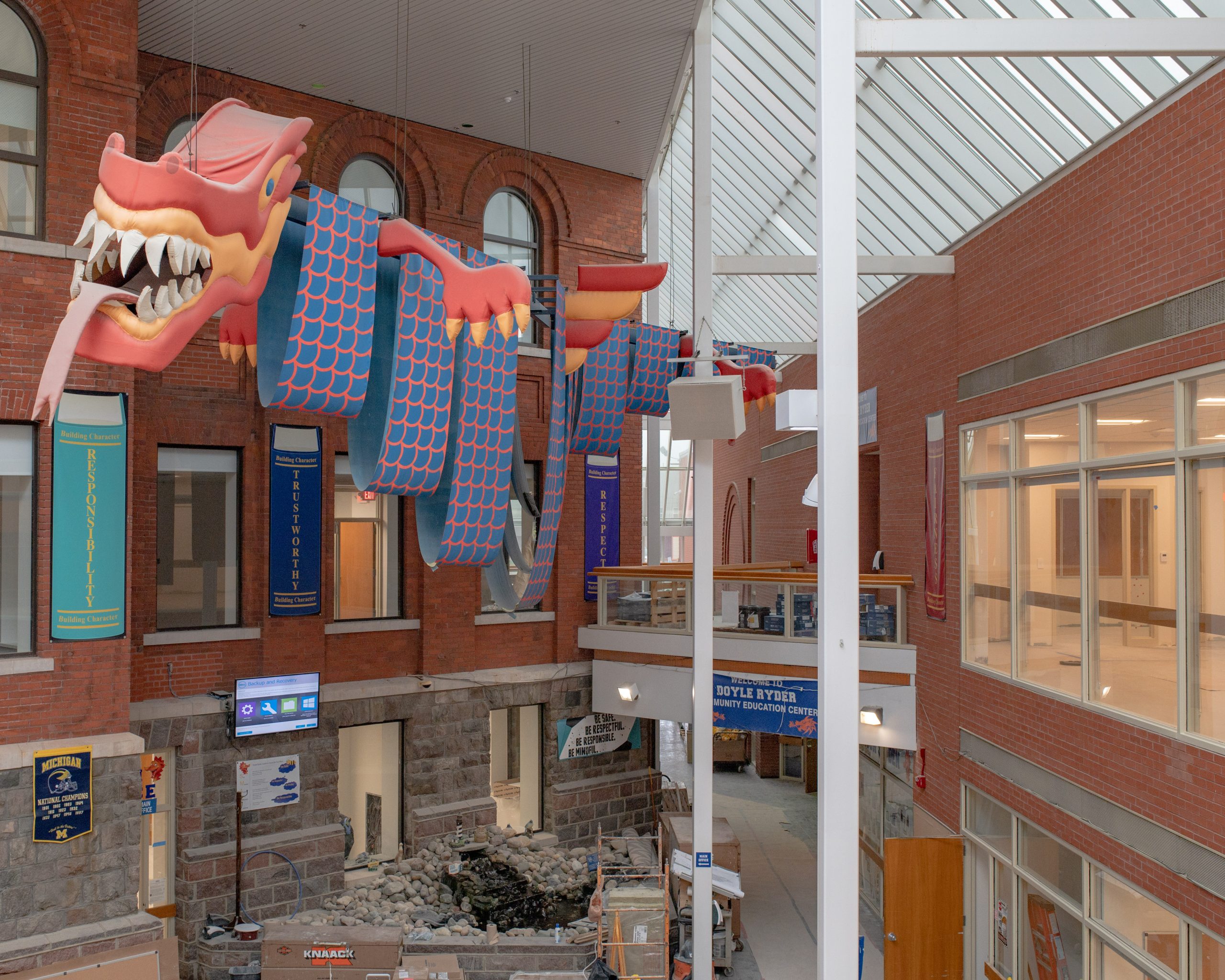 Doyle-Ryder was previously designed with an open concept, but students and staff will return to see their new classrooms with walls. The design of the classrooms also features the Doyle-Ryder Dragons’ scales on the flooring. Hallways in the building are being fitted with spaces for 1-on-1 learning.
