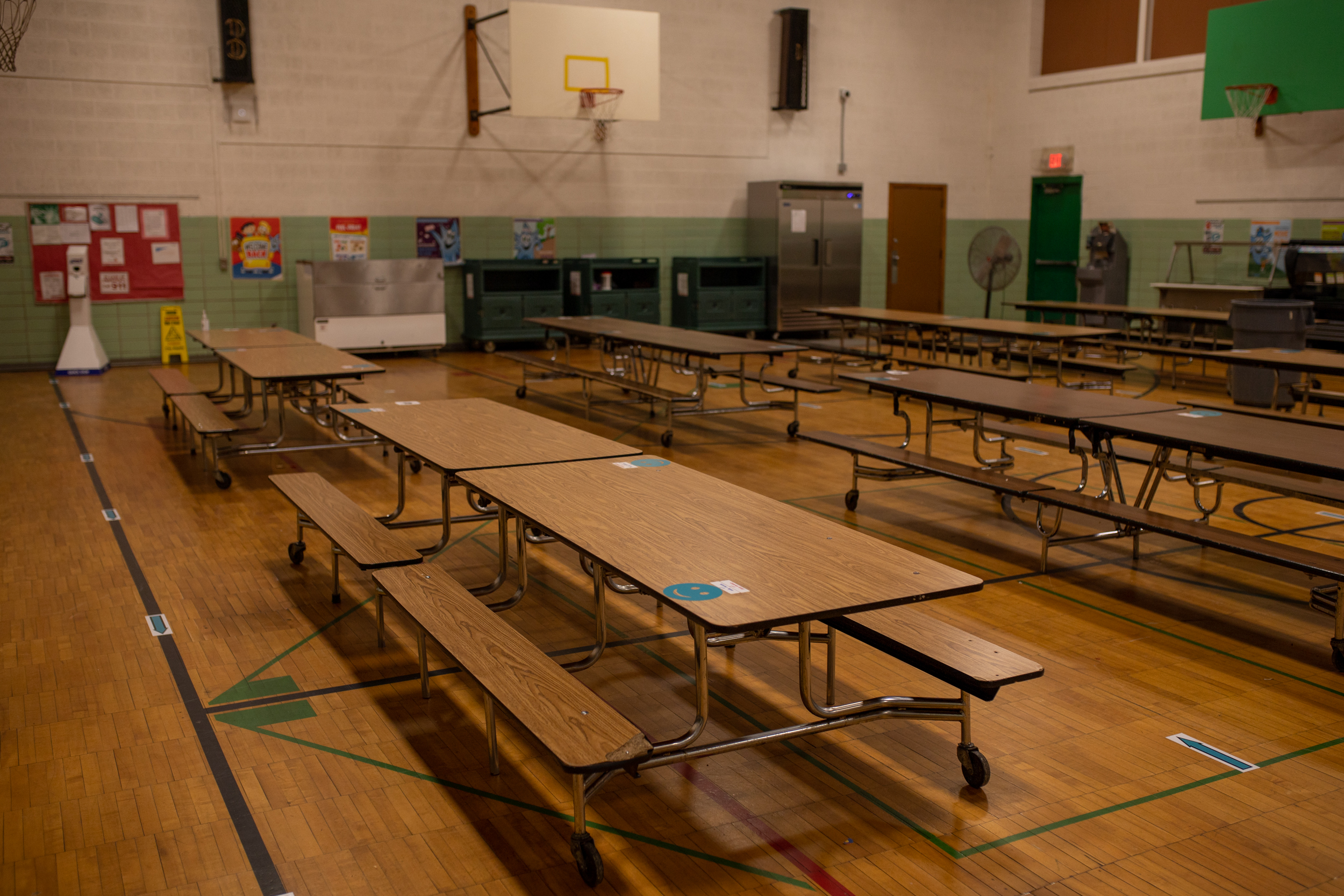 Students are spaced six feet apart at lunch tables and their food is brought to them. While they are able to attend gym class and socially distance, they are not allowed outdoor recess yet, Dominque Marshall said.