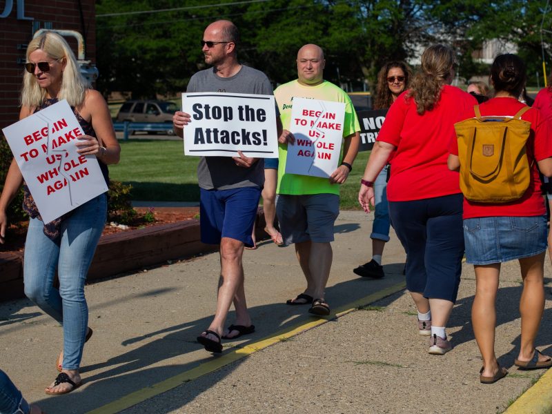 Flint, MI— Flint teachers protested a three-year pay freeze proposed by the district during a Flint Board of Education meeting on July 21.