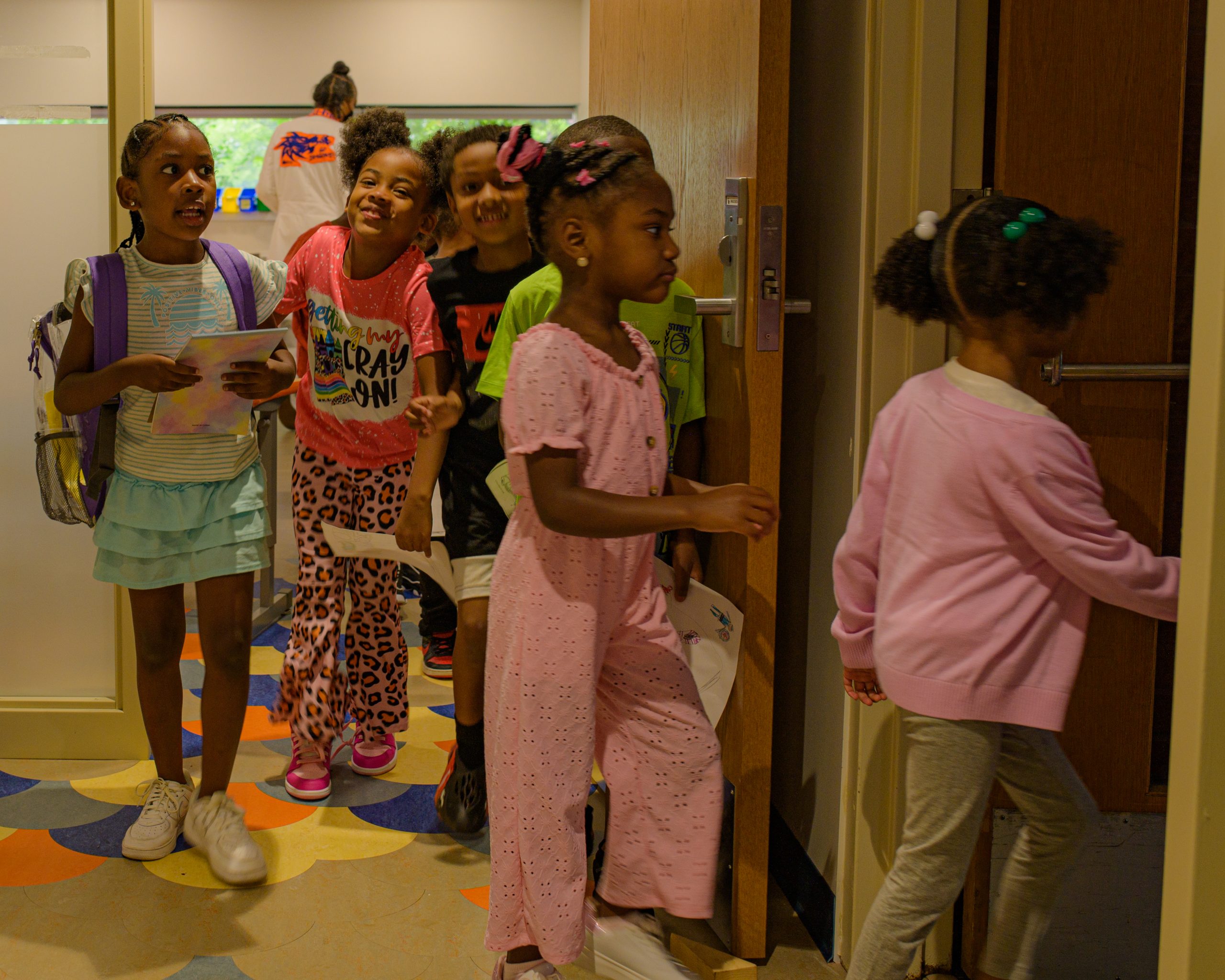 Students head out of their classroom for dismissal during the first day of school at Doyle-Ryder Elementary School in Flint, Mich. on Wednesday, Aug. 9, 2023. (Michael Indriolo | Flint Beat)