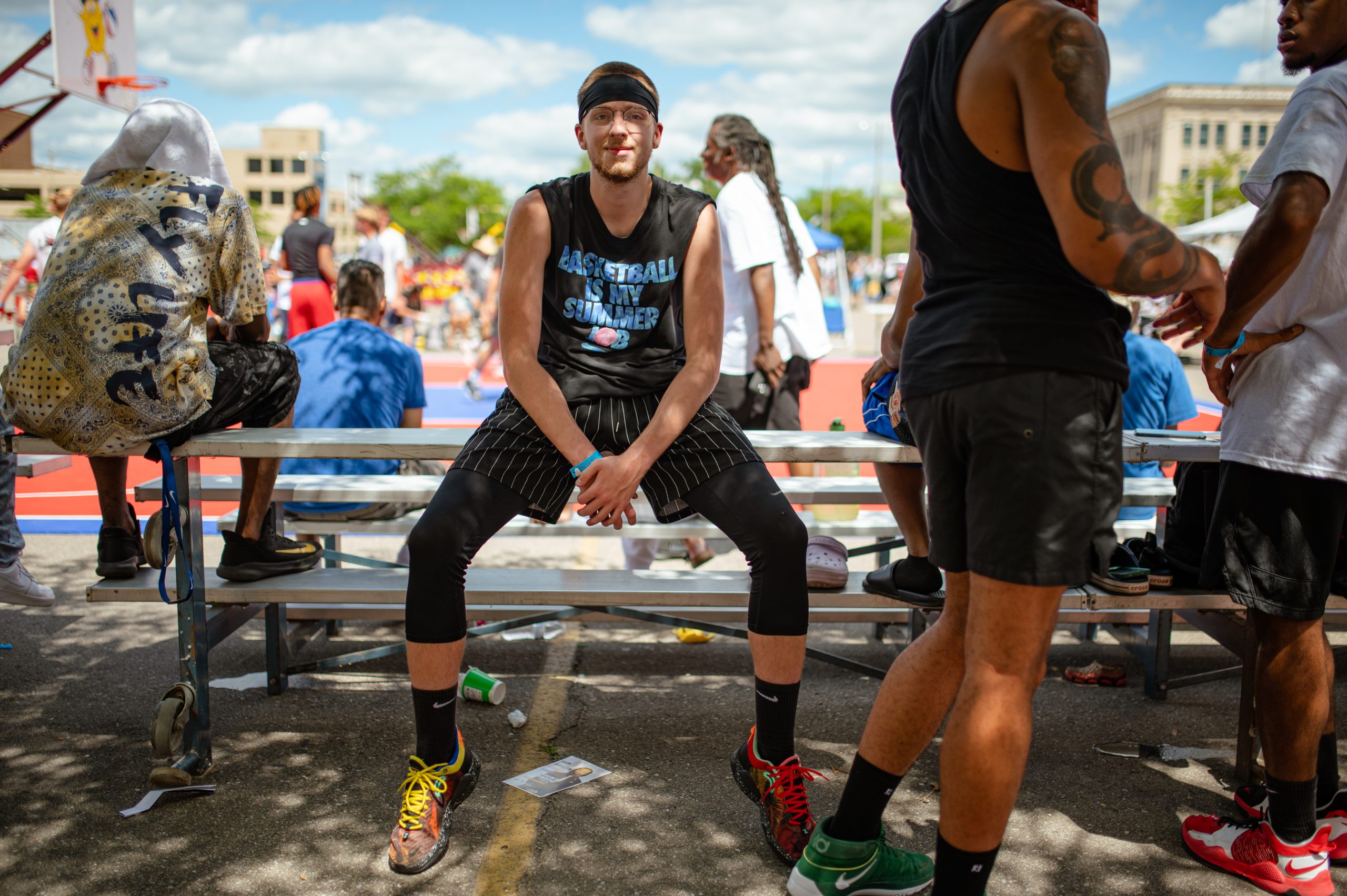 Eli Gillespie, who played for the team FTK, poses for a portrait during the Gus Macker three-on-three basketball tournament in the Flat Lot in Flint, Mich., on July 30, 2022. (Michael Indriolo | Flint Beat)