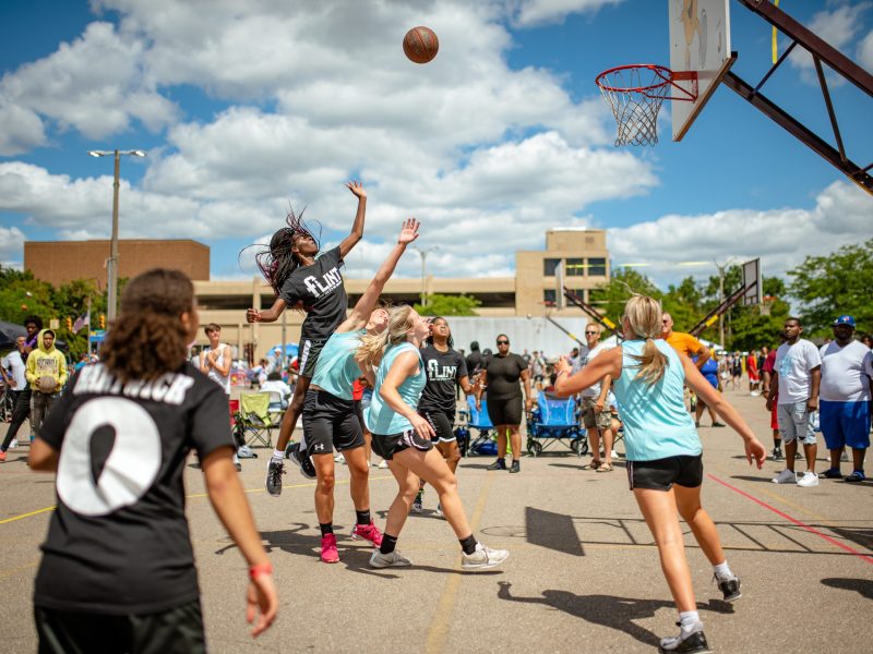 The tournament included a men’s bracket, brackets for boys and girls in high school and middle school, a 3-point contest and a dunk contest. Proceeds from the tournament will go to the Sylvester Broome Empowerment Village, a hub for after-school activities and youth programming that is planning to build a “sportsplex” near its current building on Flint’s northside.