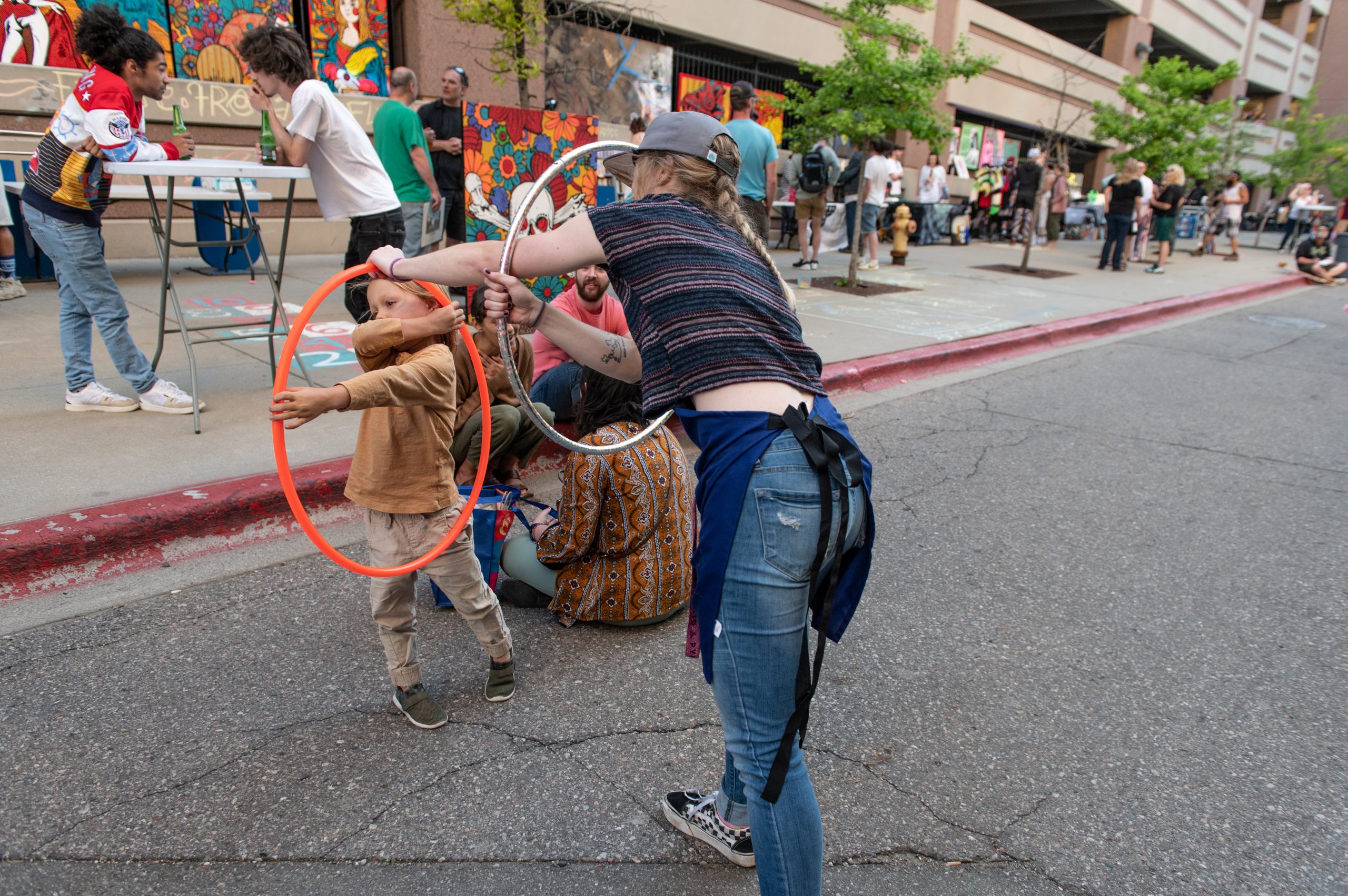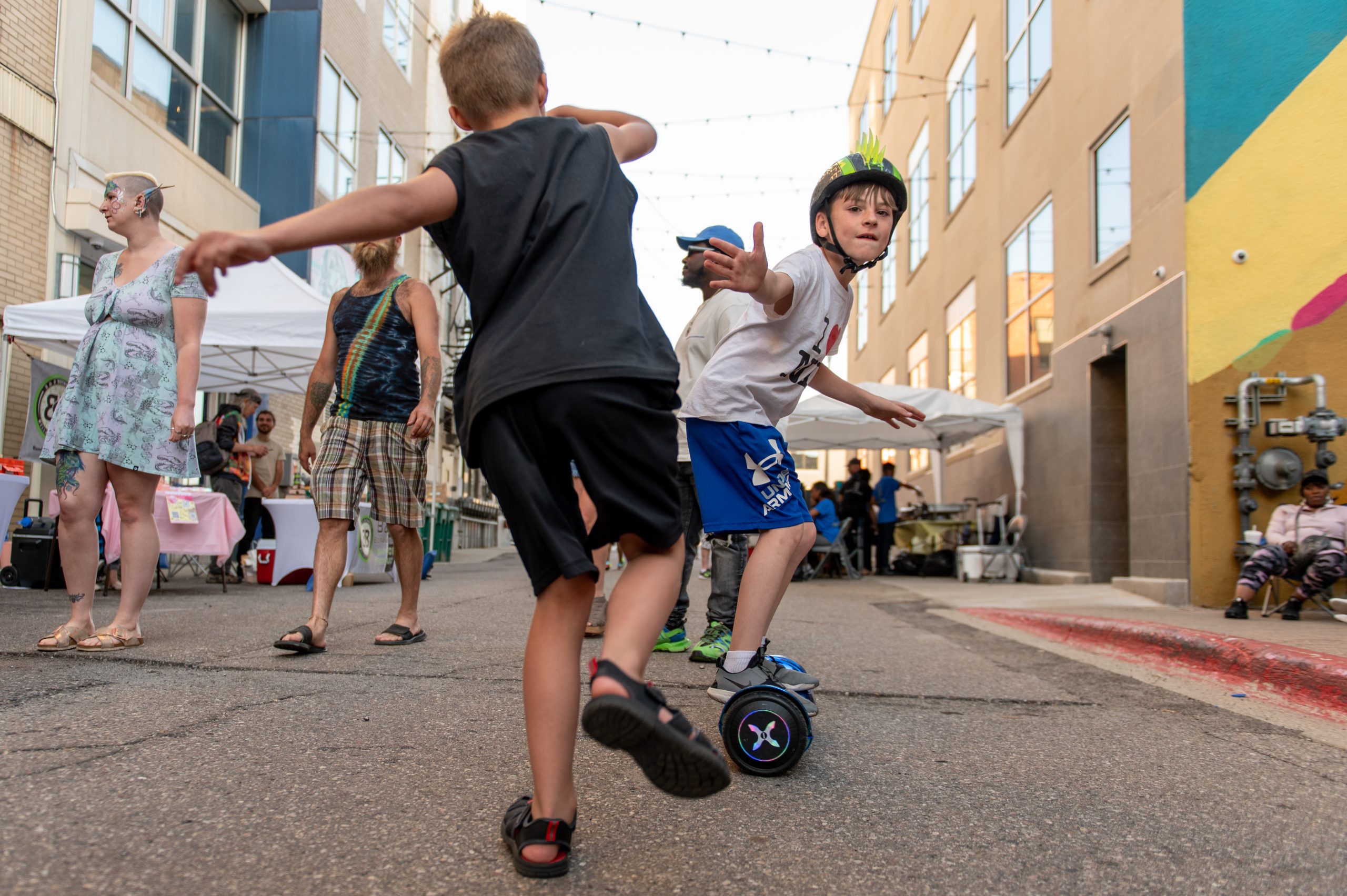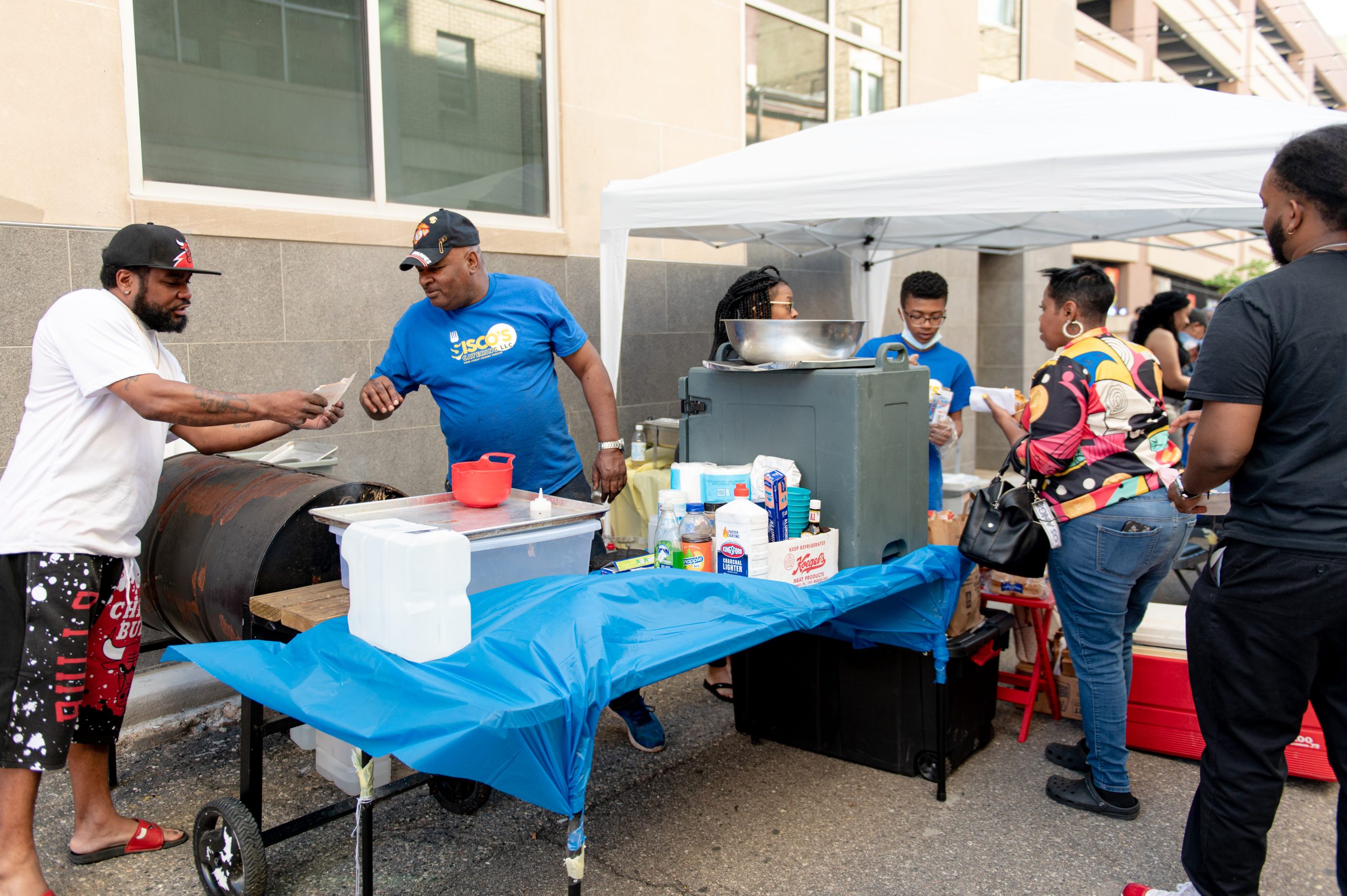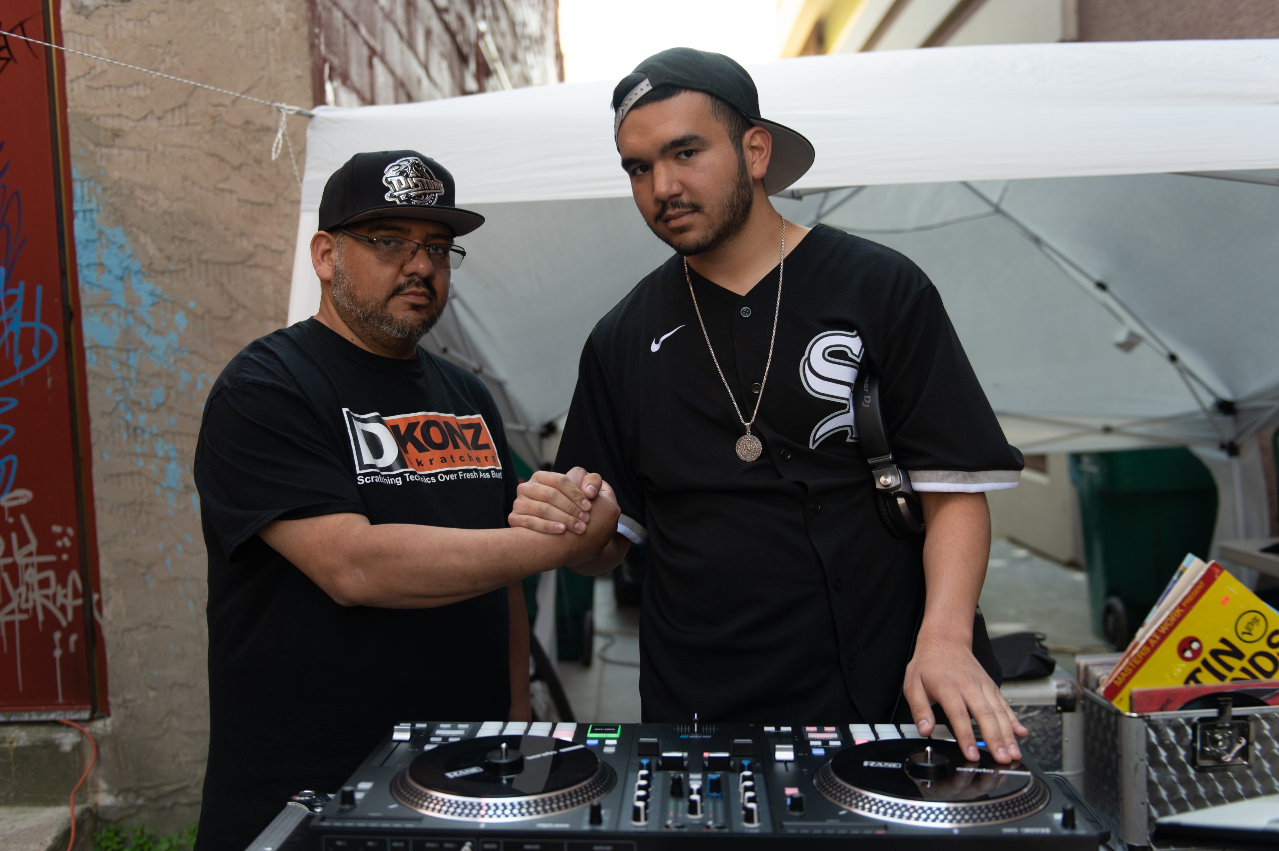 People listen to local musicians, shop with local vendors and artists and try local eats during Flint Underground’s First Friday Sound and Vision event at Buckham Alley in Flint, Mich. on Friday, June 3, 2022.Tomás “Eduardo Scizzahandz” Tello and his son, Tomás “MixMastaMás” Tello, spin records at Flint Underground’s First Friday Sound and Vision event in Buckham Alley on Friday, June 3, 2022. Tello, a DJ for more than two decades, has taught his son everything he knows about DJing, saying “If I have anything to do with it, he’ll surpass me.”Antwain “DJ Thunder” Sanders spins records while Tomás “Eduardo Scizzahandz” Tello greets Kevin “DJ Phizyx” Ortmertl during Flint Underground’s First Friday Sound and Vision event in Buckham Alley on Friday, June 3, 2022. Sanders, Tello and Ortmertl together make up the DJ collective “Turntable Militia.”Antwain “DJ Thunder” Sanders spins records during Flint Underground’s First Friday Sound and Vision event in Buckham Alley on Friday, June 3, 2022.From left to right, local artist Pauly Everett, of Flint Underground, Kevin “DJ Phizyx” Ortmertl, Tomás”Eduardo Scizzahandz” Tello and Tomás “MixMastaMás” Tello pose for a portrait during Flint Underground’s First Friday Sound and Vision event in Buckham Alley on Friday, June 3, 2022. Therman Sisco and his family serve barbecue to customers during Flint Underground’s First Friday Sound and Vision event in Buckham Alley on Friday, June 3, 2022.Therman Sisco posed for a portrait outside his family’s catering business setup during Flint Underground’s First Friday Sound and Vision event in Buckham Alley on Friday, June 3, 2022. Sisco’s catering business grew out of his life, he said, which is often full of family, friends, food and music. “If you got all four of those, you got it made,” he said.Asa Zuccaro, executive director of the Latinx Technology and Community Center, prepares tacos during Flint Underground’s First Friday Sound and Vision event in Buckham Alley on Friday, June 3, 2022.Saeed Littlejohn (left), owner of Healthy Side Juice Bar, and his son, DJ Littlejohn (center), serve fresh pressed juices and hang out with local musician Figga Da Kid (right) during Flint Underground’s First Friday Sound and Vision event at Buckham Alley on Friday, June 3, 2022.Nya Hasan (left), Sage O’Connor (center) and Marceline Nichols (right) draw with chalk during Flint Underground’s First Friday Sound and Vision event in Buckham Alley on Friday, June 3, 2022.Sage O’Connor (left) and Nya Hasan (right) pose for a portrait during Flint Underground’s First Friday Sound and Vision event in Buckham Alley on Friday, June 3, 2022.Hoffman’s Deli employee Macy Krupp shows Sage O’Connor how to hula hoop during Flint Underground’s First Friday Sound and Vision event at Buckham Alley on Friday, June 3, 2022.Hoffman’s Deli employee Macy Krupp hula hoops during Flint Underground’s First Friday Sound and Vision event in Buckham Alley on Friday, June 3, 2022.Madicen Sage rides a hoverboard during Flint Underground’s First Friday Sound and Vision event in Buckham Alley on Friday, June 3, 2022.Jameson Sage chases after Madicen Sage while he rides a hoverboard in Flint, Mich. during Flint Underground’s First Friday Sound and Vision event in Buckham Alley on Friday, June 3, 2022.Bee Robertson (left) and Papillon Schunzel (right) pose for a portrait in downtown Flint, Mich. during Flint Underground’s First Friday Sound and Vision event in Buckham Alley on Friday, June 3, 2022.People listen to local musicians, shop with local vendors and artists and try local eats in downtown Flint, Mich. during Flint Underground’s First Friday Sound and Vision event at Buckham Alley on Friday, June 3, 2022.Gabriel Abbas (left), a local artist who owns a clothing business called Wookie Wearables, and Austin Helmer (right) pose for a portrait on top of the parking garage next to Buckham Alley in downtown Flint, Mich., where Flint Underground hosted its First Friday Sound and Vision event on Friday, June 3, 2022.Angel (left) and Casey Jones (right) dance to music played by Caleb Johnson + Reaching as the sun fades over Buckham Alley during Flint Underground’s First Friday Sound and Vision event on Friday, June 3, 2022. The Flint, Mich. event returned after a two-year hiatus. (Michael Indriolo | Flint Beat)Russell Woods plays guitar while local nonprofit project manager and influencer Jonathan McKay and Aaron Abbott talk during Flint Underground’s First Friday Sound and Vision event in downtown Flint, Mich. on Friday, June 3, 2022. (Michael Indriolo | Flint Beat)