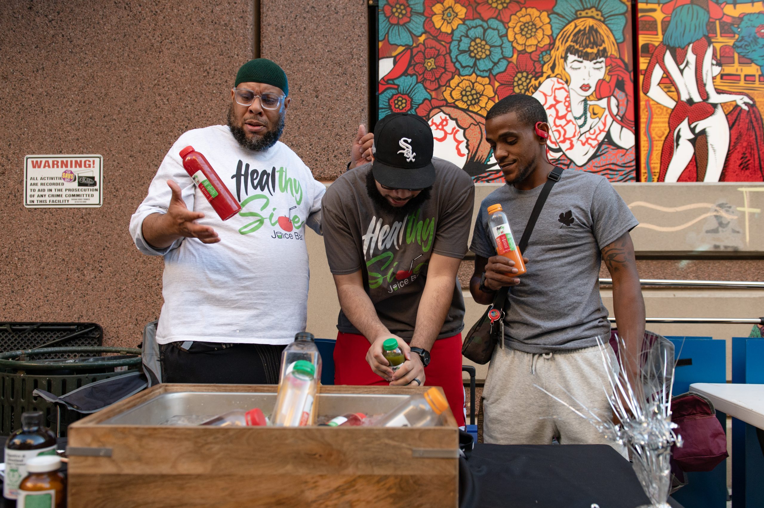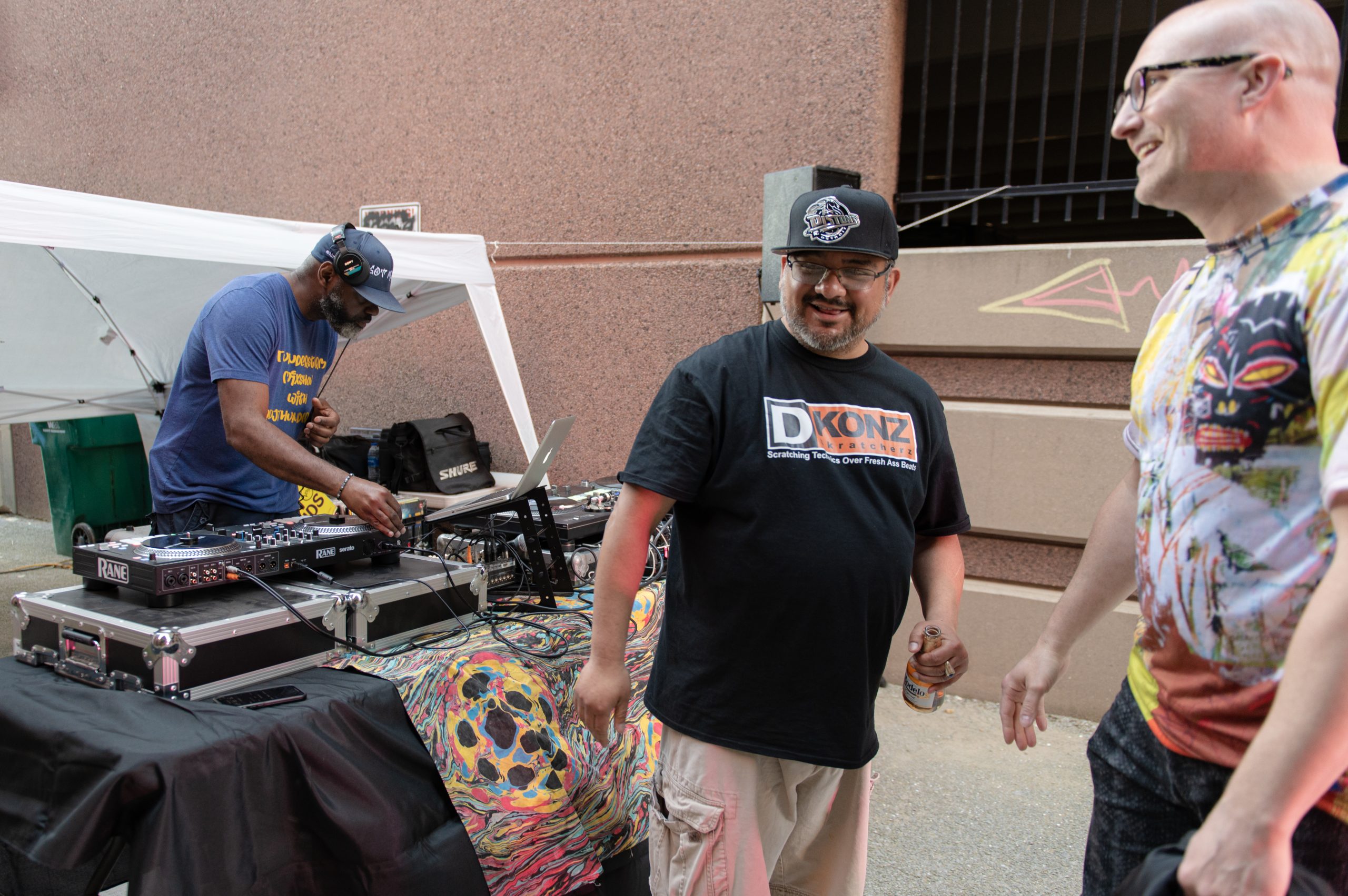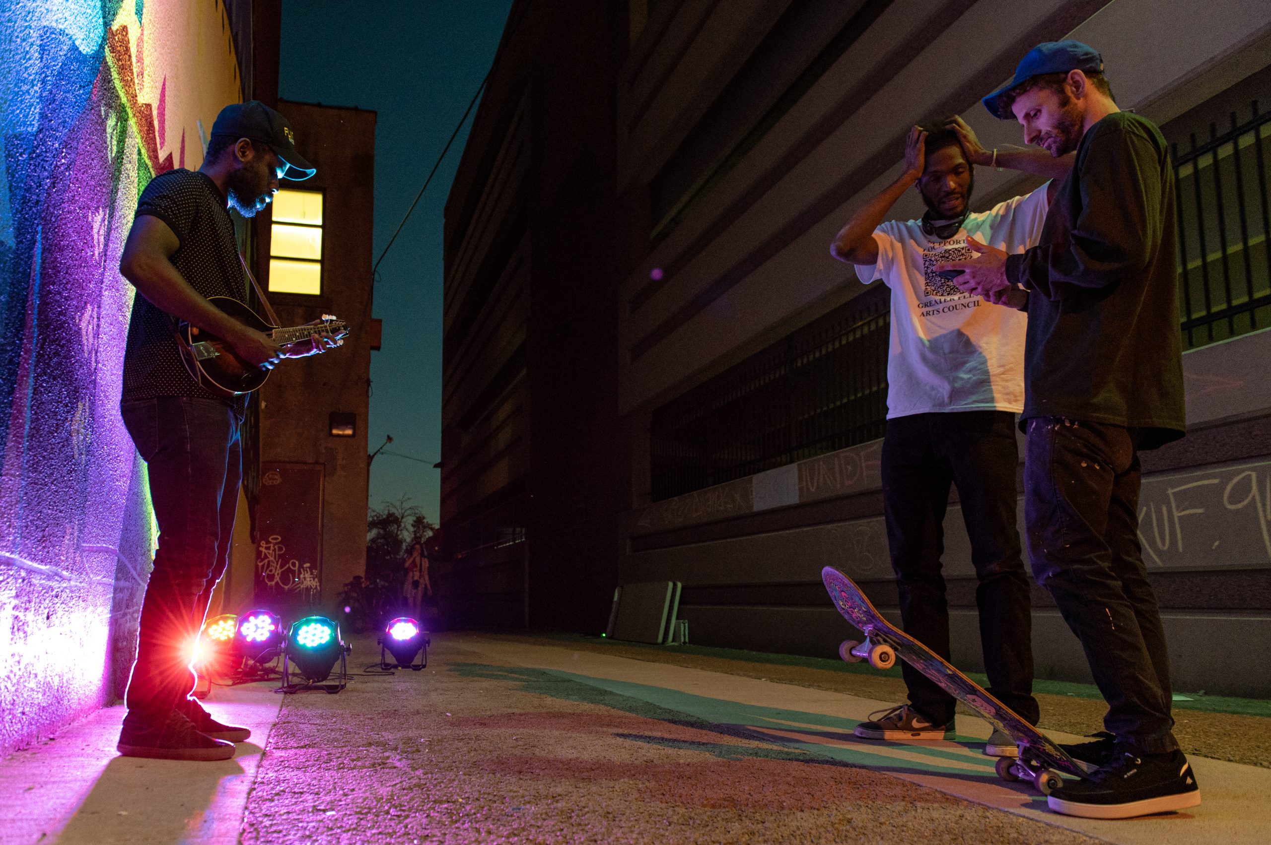 Local DJs Eduardo Scizzahandz, MixMastaMás, and DJ Thunder spun records between sets from Big Donut and Caleb Johnson + Reaching. Local artist, Pauly Everett of Flint Underground, lined the alley with his paintings along with work from other local artists like Amanda Jannet, Isiah Lattimore, Andrea Nicole Tinsman, Venus Blu, and Cryptic Filth.