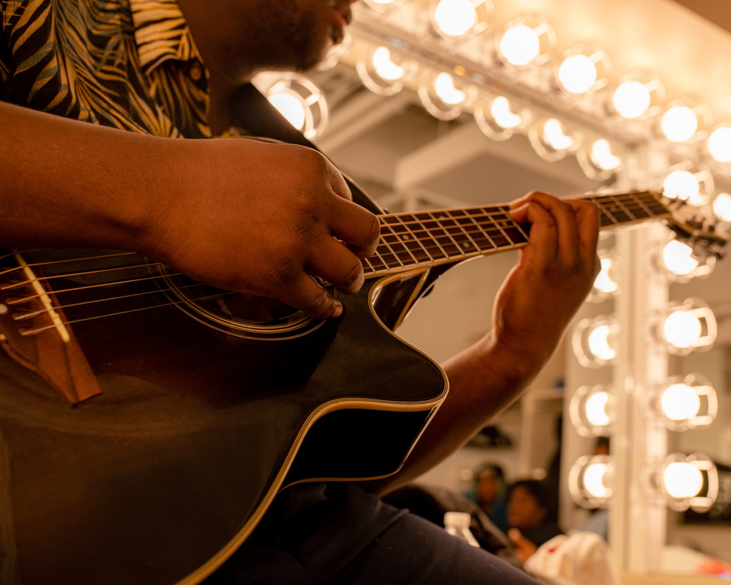 Deonta “It’s Deonta” Gaddy, Jr., practices his set in his dressing room ahead of WOW Outreach’s Flint’s Got Talent showcase at the Capitol Theatre in Flint, Mich. on Friday, Dec. 16, 2022. (Michael Indriolo | Flint Beat)