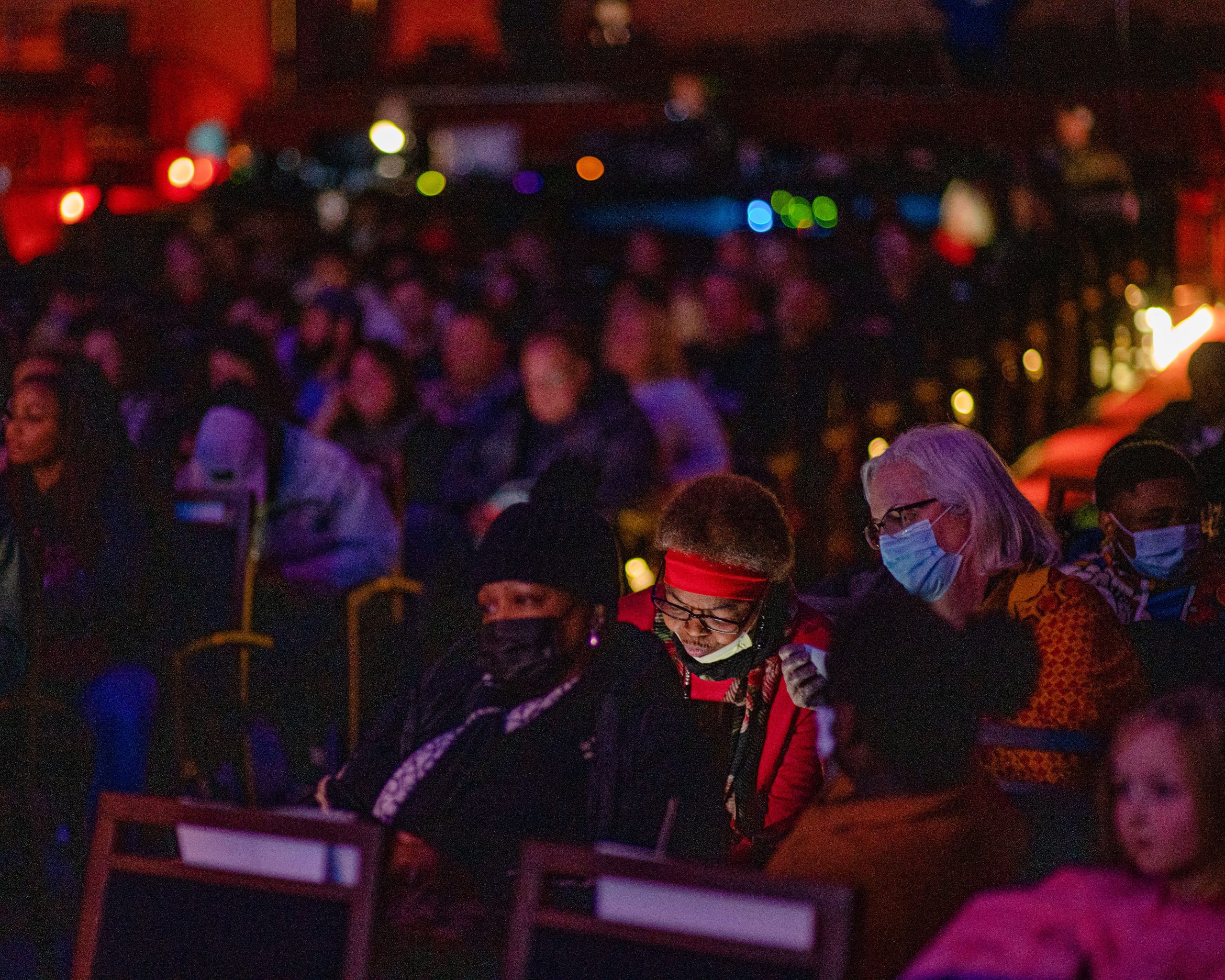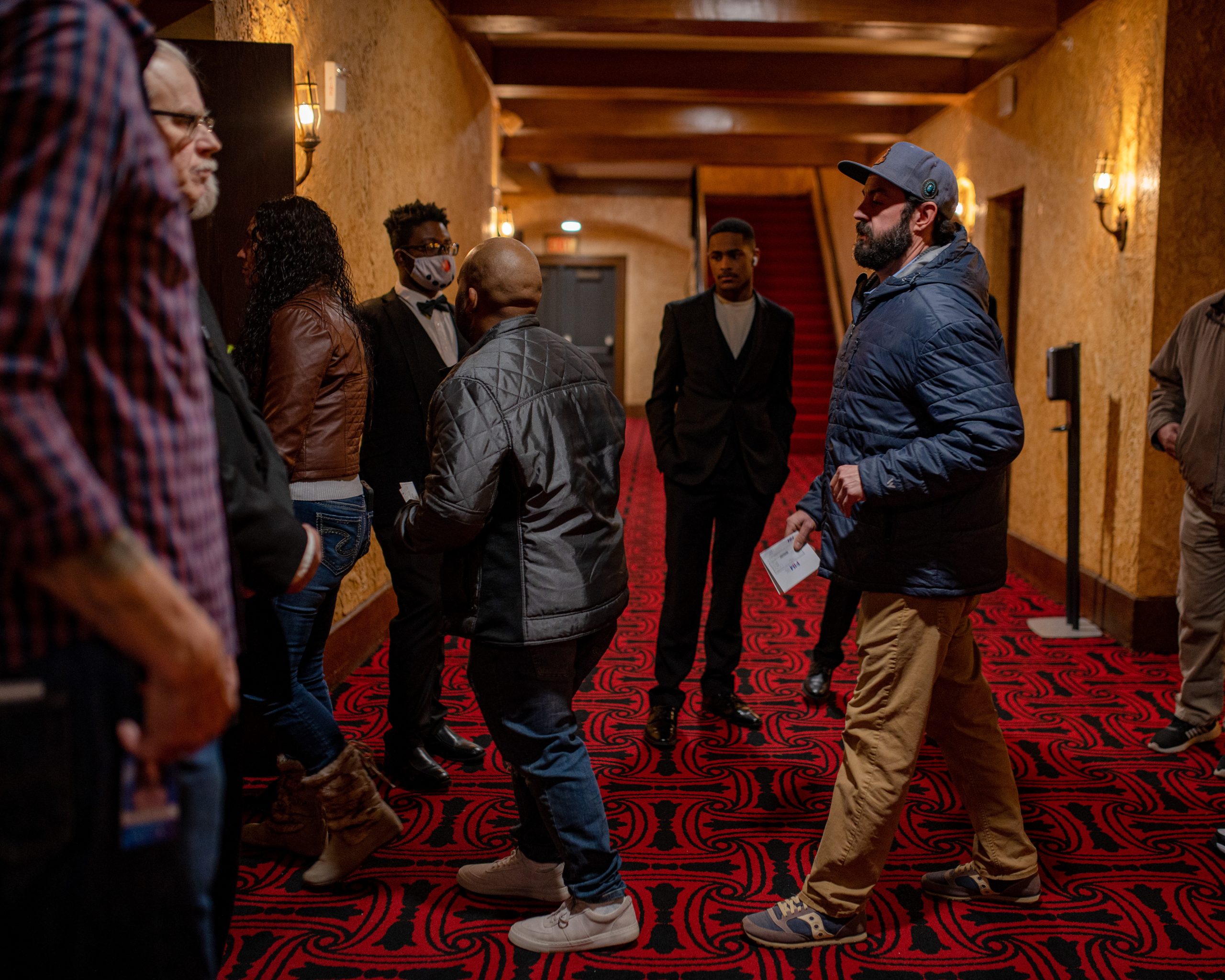 Attendees file into the theater ahead of WOW Outreach’s Flint’s Got Talent showcase at the Capitol Theatre in Flint, Mich. on Friday, Dec. 16, 2022. (Michael Indriolo | Flint Beat)