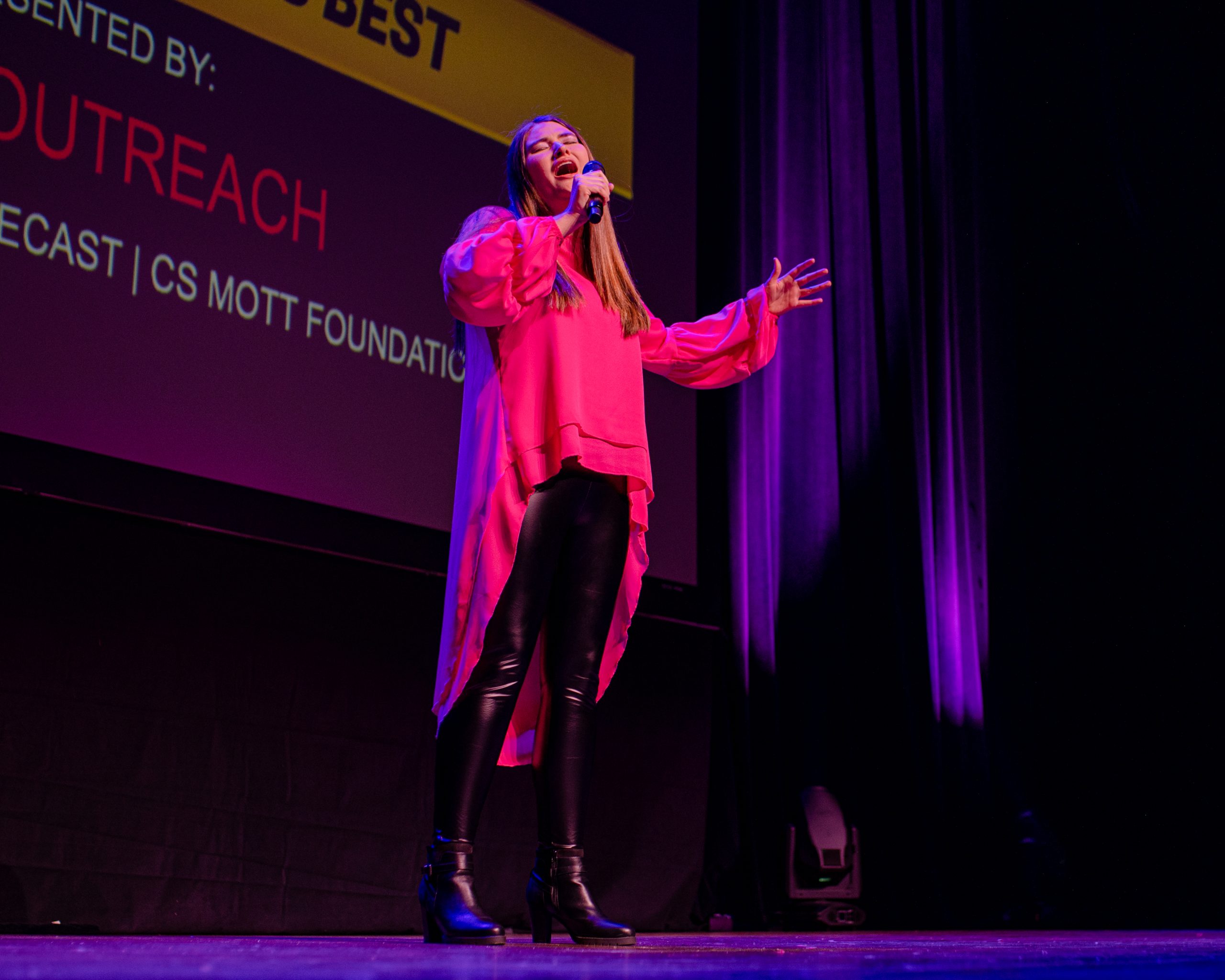 Kaitlyn Honnen performs during WOW Outreach’s Flint’s Got Talent showcase at the Capitol Theatre in Flint, Mich. on Friday, Dec. 16, 2022. (Michael Indriolo | Flint Beat)Kaitlyn Honnen performs during WOW Outreach’s Flint’s Got Talent showcase at the Capitol Theatre in Flint, Mich. on Friday, Dec. 16, 2022. (Michael Indriolo | Flint Beat)