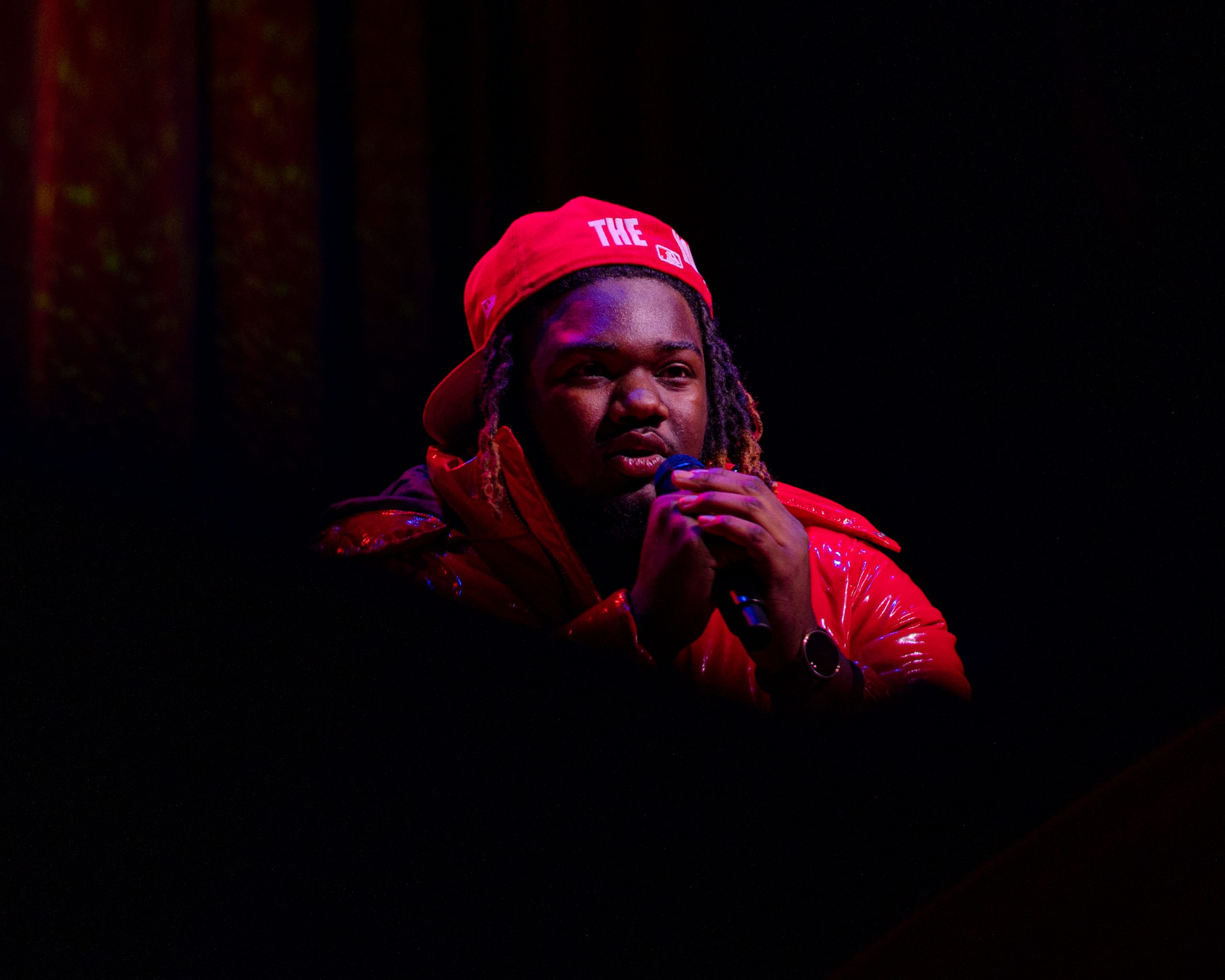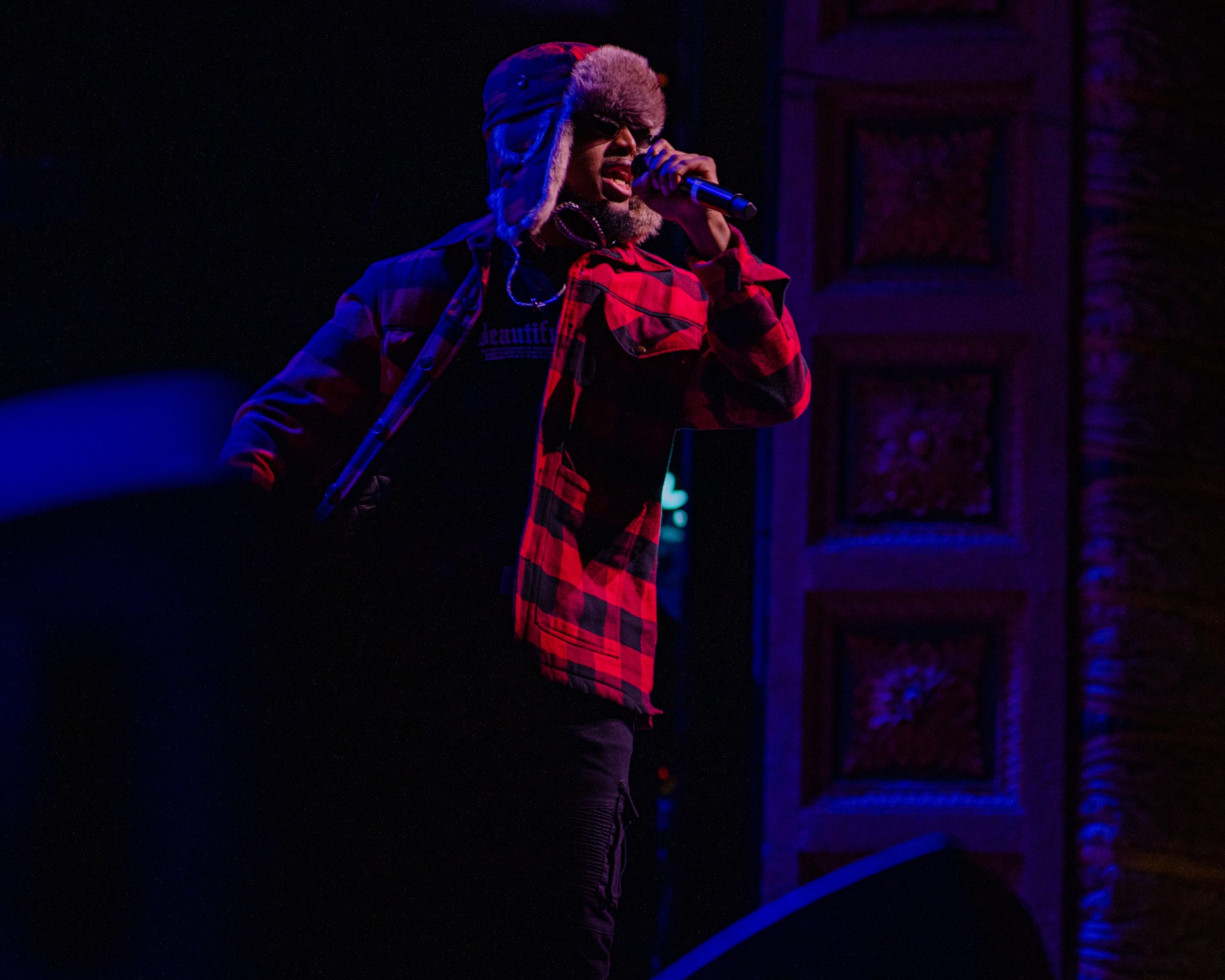 Chris “Butter” Brown Pinson performs during WOW Outreach’s Flint’s Got Talent showcase at the Capitol Theatre in Flint, Mich. on Friday, Dec. 16, 2022. (Joshua Johnson | Flint Beat)