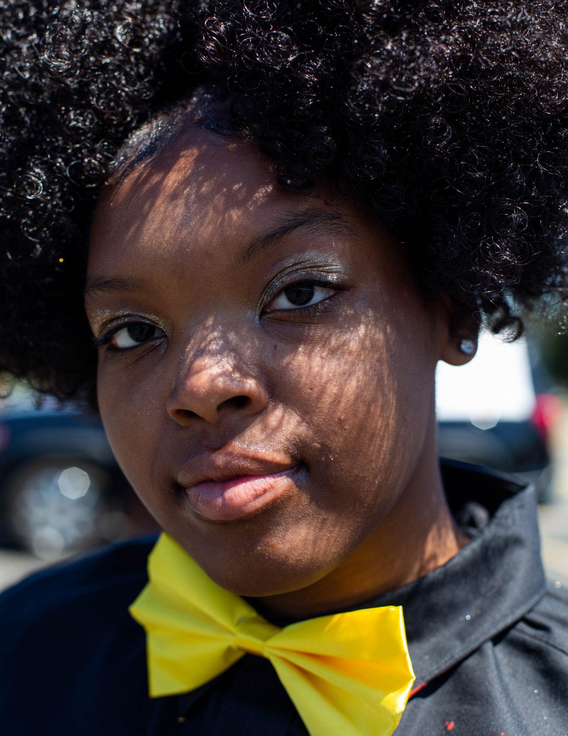 Camryn Emery, 14, of Pontiac, Mich. waits for the annual Juneteenth parade in the UM-Flint parking lot in Flint, Mich. on June 18, 2022. Emery is part of the Notorious Monroe Dance Group. (KT Kanazawich | Flint Beat)